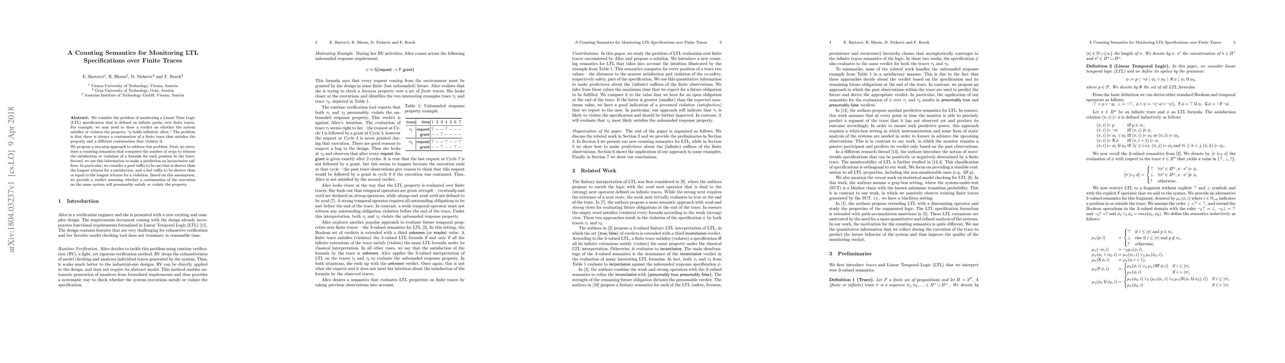 Researchers propose a two-step approach to monitor LTL specifications over finite traces, using a counting semantics to predict satisfaction or violation based on suffix lengths.