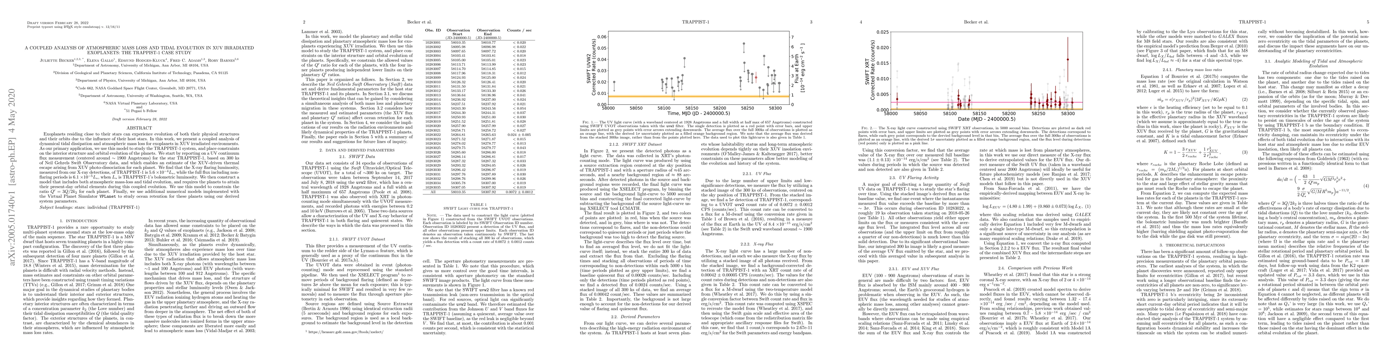 Exoplanets residing close to their stars can experience evolution of both their physical structures and their orbits due to the influence of their host stars. In this work, we present a coupled analysis of dynamical tidal dissipation and atmospheric mass loss for exoplanets in XUV irradiated environments. As our primary application, we use this model to study the TRAPPIST-1 system, and place constraints on the interior structure and orbital evolution of the planets. We start by reporting on a UV continuum flux measurement (centered around $\sim1900$ Angstroms) for the star TRAPPIST-1, based on 300 ks of Neil Gehrels Swift Observatory data, and which enables an estimate of the XUV-driven thermal escape arising from XUV photo-dissociation for each planet. We find that the X-ray flaring luminosity, measured from our X-ray detections, of TRAPPIST-1 is 5.6 $\times$10$^{-4} L_{*}$, while the full flux including non-flaring periods is 6.1 $\times$10$^{-5} L_{*}$, when $L_{*}$ is TRAPPIST-1's bolometric luminosity. We then construct a model that includes both atmospheric mass-loss and tidal evolution, and requires the planets to attain their present-day orbital elements during this coupled evolution. We use this model to constrain the ratio $Q'=3Q/2k_{2}$ for each planet. Finally, we use additional numerical models implemented with the Virtual Planet Simulator \texttt{VPLanet} to study ocean retention for these planets using our derived system parameters.