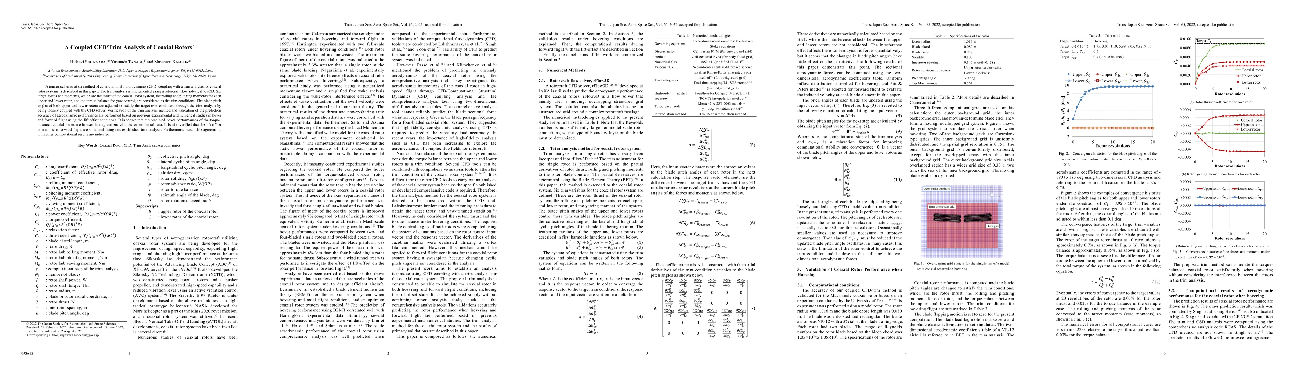 A numerical simulation method of computational fluid dynamics (CFD) coupling with a trim analysis for coaxial rotor systems is described in this paper. The trim analysis is implemented using a rotorcraft flow solver, rFlow3D. Six target forces and moments, which are the thrust of the coaxial rotor system, the rolling and pitching moments for each upper and lower rotor, and the torque balance for yaw control, are considered as the trim conditions. The blade pitch angles of both upper and lower rotors are adjusted to satisfy the target trim conditions through the trim analysis by being loosely coupled with the CFD solver. Verification of the trim analysis method and validation of the prediction accuracy of aerodynamic performance are performed based on previous experimental and numerical studies in hover and forward flight using the lift-offset conditions. It is shown that the predicted hover performances of the torque-balanced coaxial rotors are in excellent agreement with the experimental data. It is also verified that the lift-offset conditions in forward flight are simulated using this established trim analysis. Furthermore, reasonable agreements with other computational results are indicated.