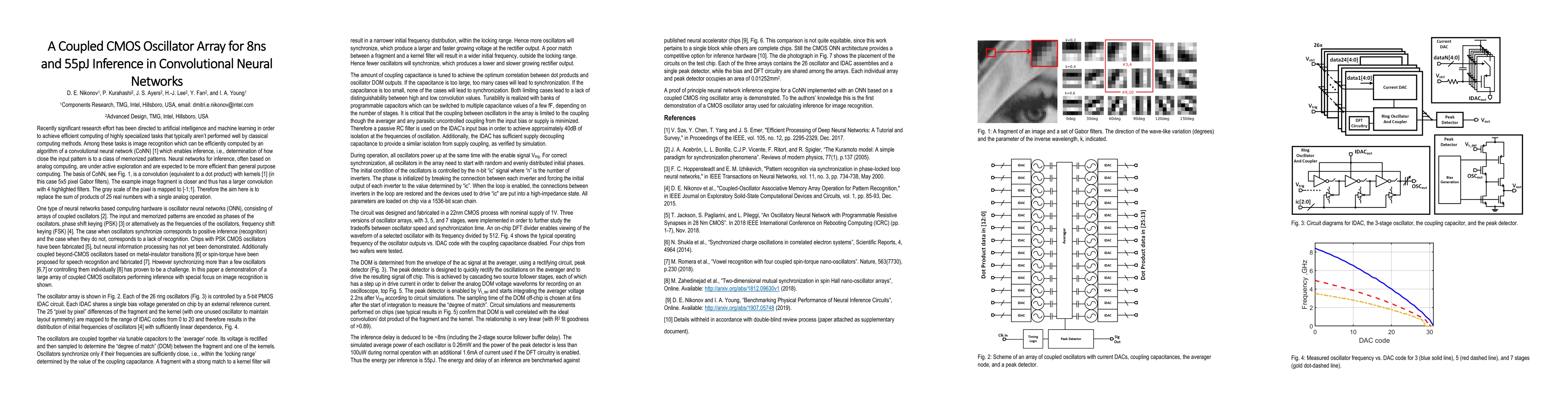 Researchers developed an array of 26 CMOS ring oscillators for efficient inference in convolutional neural networks, achieving 8ns processing time and 55pJ energy consumption.