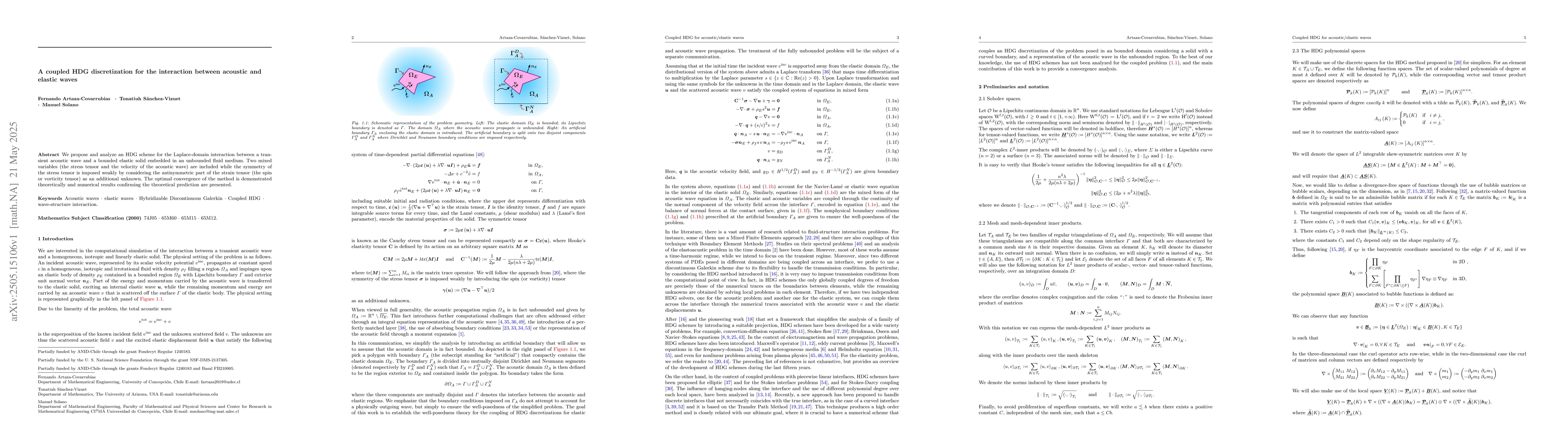 Researchers propose a new numerical method to simulate interactions between acoustic waves and elastic solids in fluids, demonstrating optimal convergence and confirming theoretical predictions through numerical results.