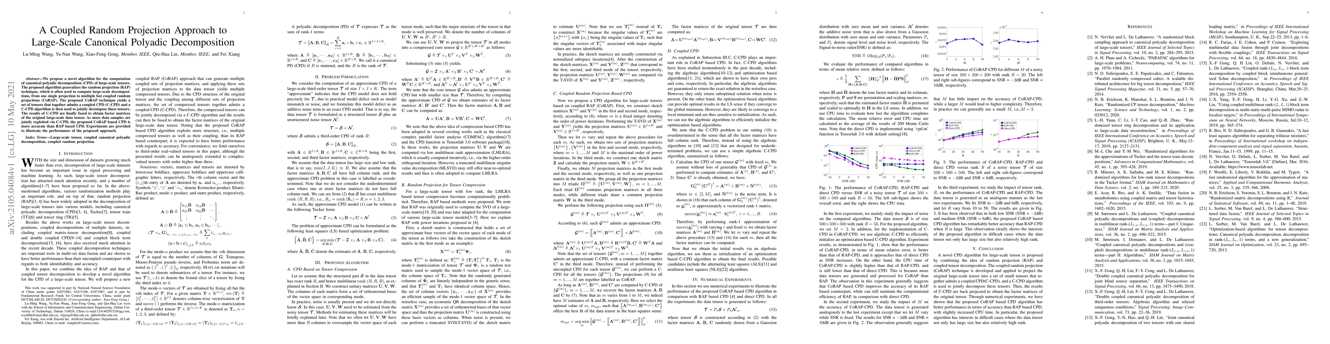 We propose a novel algorithm for the computation of canonical polyadic decomposition (CPD) of large-scale tensors. The proposed algorithm generalizes the random projection (RAP) technique, which is often used to compute large-scale decompositions, from one single projection to multiple but coupled random projections (CoRAP). The proposed CoRAP technique yields a set of tensors that together admits a coupled CPD (C-CPD) and a C-CPD algorithm is then used to jointly decompose these tensors. The results of C-CPD are finally fused to obtain factor matrices of the original large-scale data tensor. As more data samples are jointly exploited via C-CPD, the proposed CoRAP based CPD is more accurate than RAP based CPD. Experiments are provided to illustrate the performance of the proposed approach.