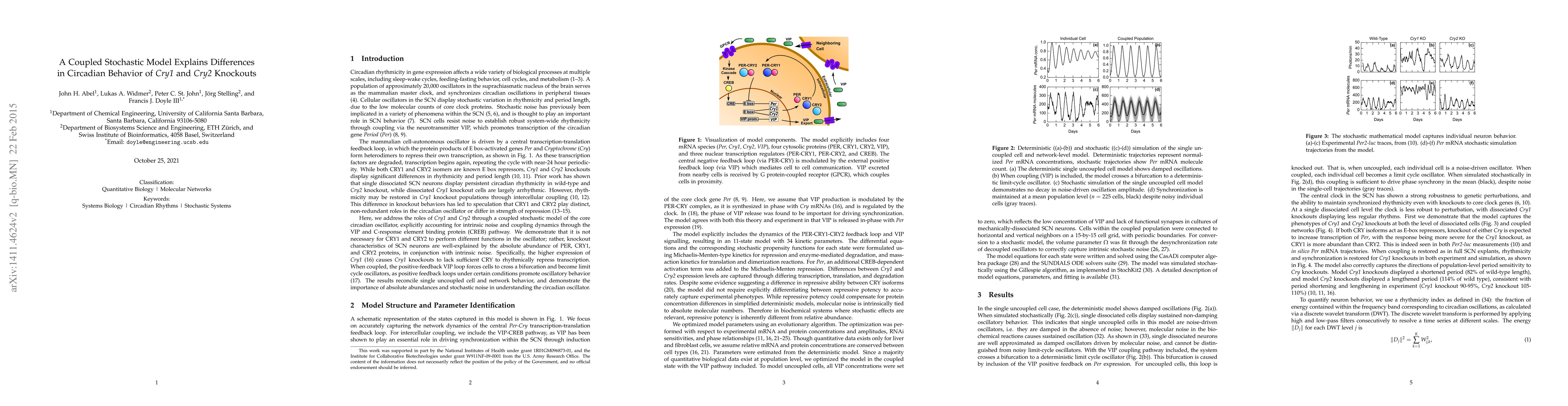 A new model explains why knocking out Cry1 and Cry2 genes in brain cells affects circadian rhythms differently; it shows that genetic differences, not different roles, cause the variations.