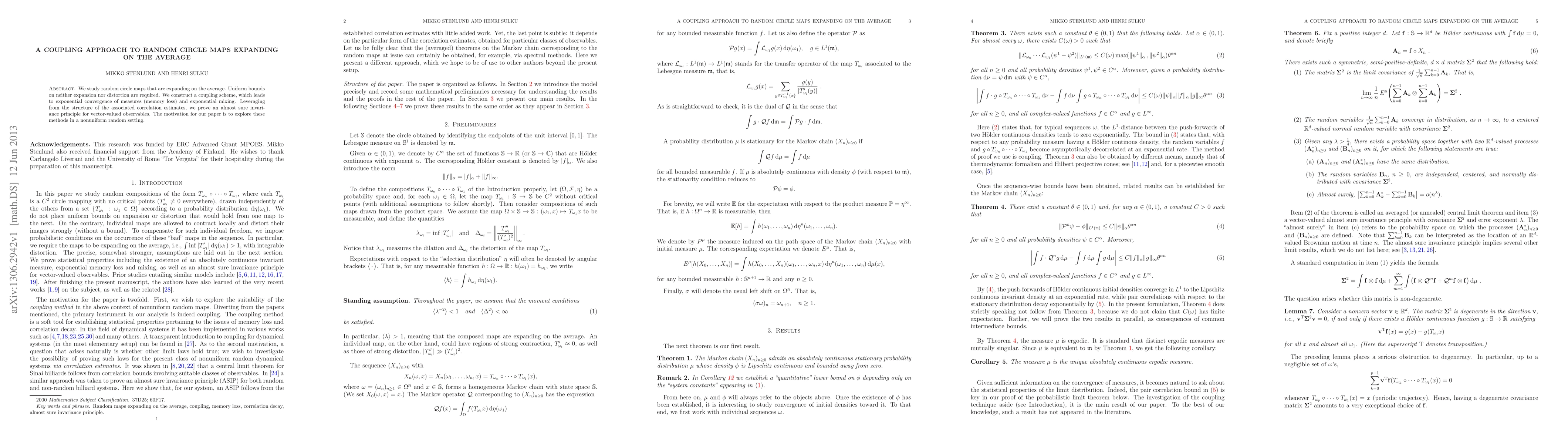 This paper develops a coupling scheme for random circle maps that are expanding on average, showing exponential convergence and mixing. It proves an almost sure invariance principle for vector-valued observables, aiming to explore these methods in a nonuniform random setting without requiring uniform bounds on expansion or distortion.