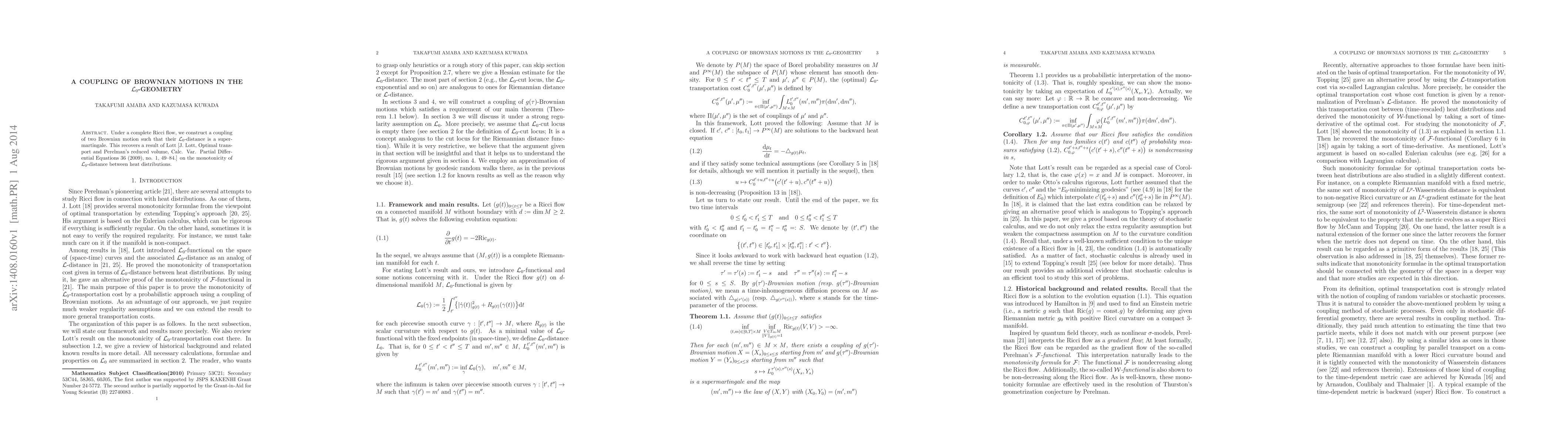 This paper constructs a coupling of two Brownian motions under a complete Ricci flow, ensuring their $\mathcal{L}_0$-distance is a supermartingale, thereby confirming Lott's result on the monotonicity of $\mathcal{L}_0$-distance between heat distributions.