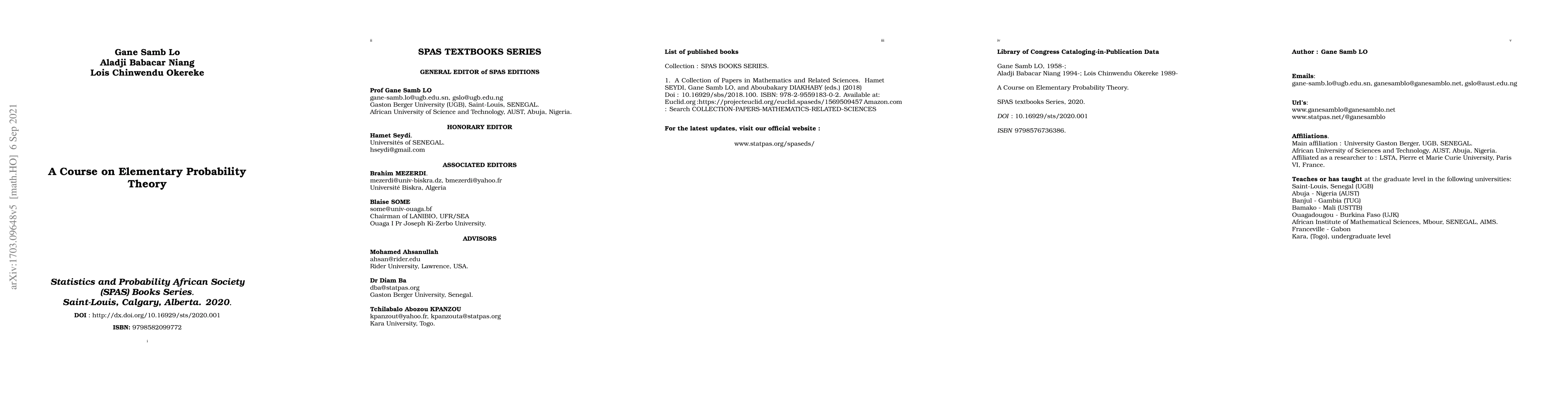 This book aims to provide a foundational understanding of elementary probability theory for secondary school-level mathematics students, focusing on discrete probability concepts and problem-solving skills, while preparing readers for advanced studies in mathematical statistics and theory.