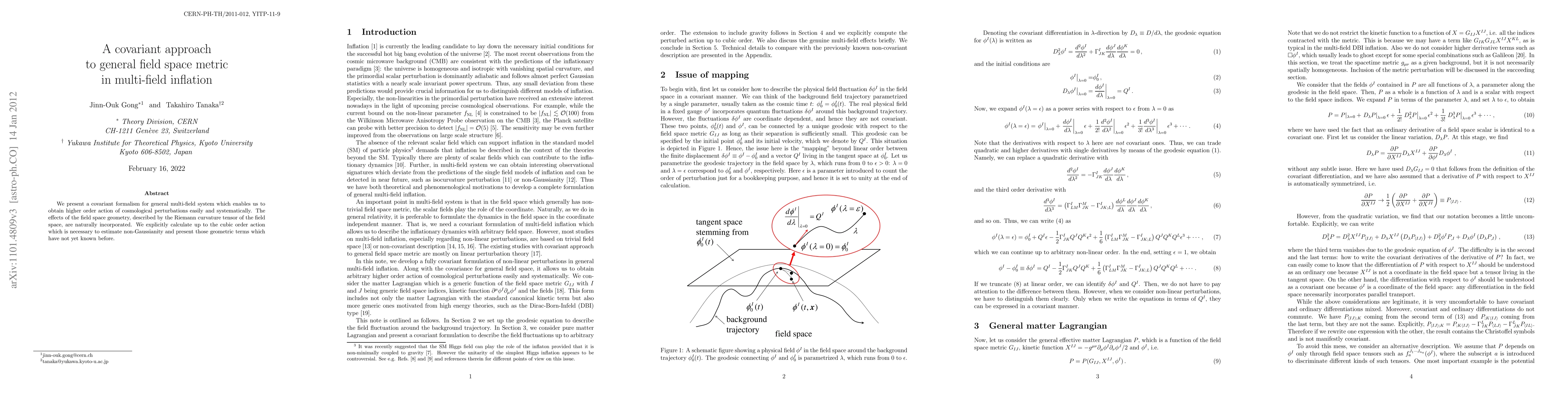 We present a covariant formalism for general multi-field system which enables us to obtain higher order action of cosmological perturbations easily and systematically. The effects of the field space geometry, described by the Riemann curvature tensor of the field space, are naturally incorporated. We explicitly calculate up to the cubic order action which is necessary to estimate non-Gaussianity and present those geometric terms which have not yet known before.