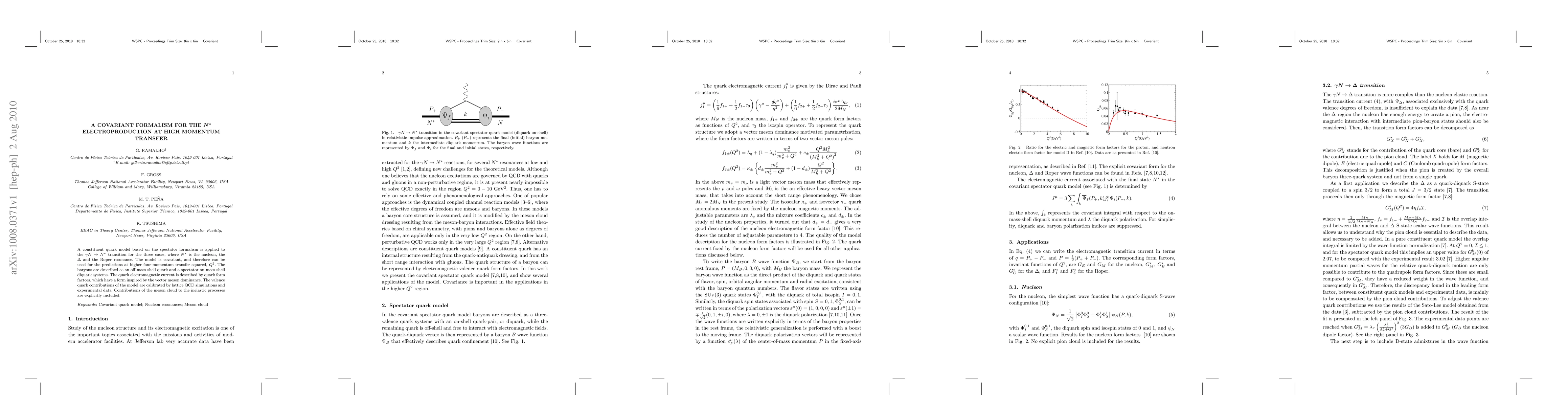 This research applies a covariant constituent quark model based on the spectator formalism to predict gamma N -> N* electroproduction at high momentum transfer, considering nucleon, Delta, and Roper resonances. The model incorporates quark form factors inspired by vector meson dominance and includes meson cloud contributions, calibrated by lattice QCD and experimental data.