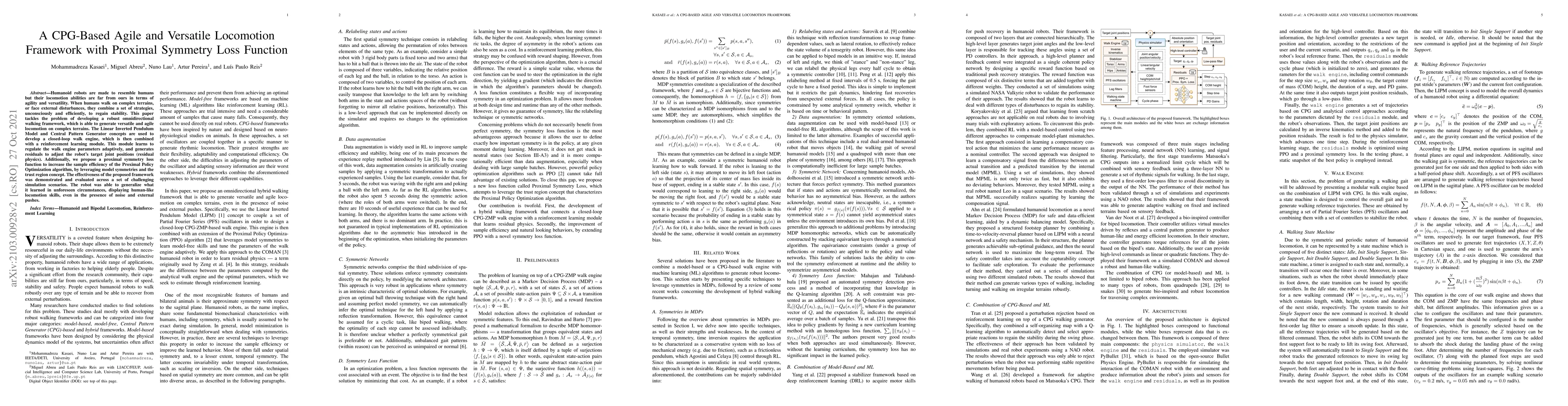 This paper proposes a robust omnidirectional walking framework for humanoid robots using a combination of Linear Inverted Pendulum Model and Central Pattern Generators, reinforced by adaptive learning and a proximal symmetry loss function to enhance sample efficiency. The framework enables versatile and agile locomotion on complex terrains, demonstrating human-like adaptability in simulations.