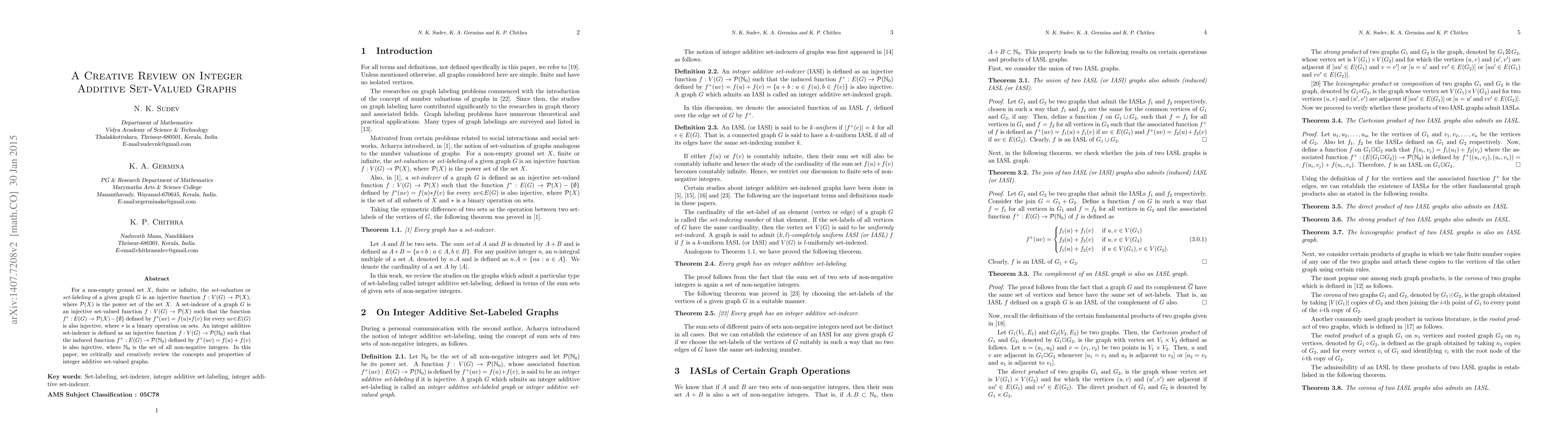 This paper critically reviews integer additive set-valued graphs, defining them as injective functions from a graph's vertices to non-negative integers, with edge-function preserving addition. It explores properties and implications of these structures, providing a comprehensive analysis for graph theory enthusiasts and researchers.