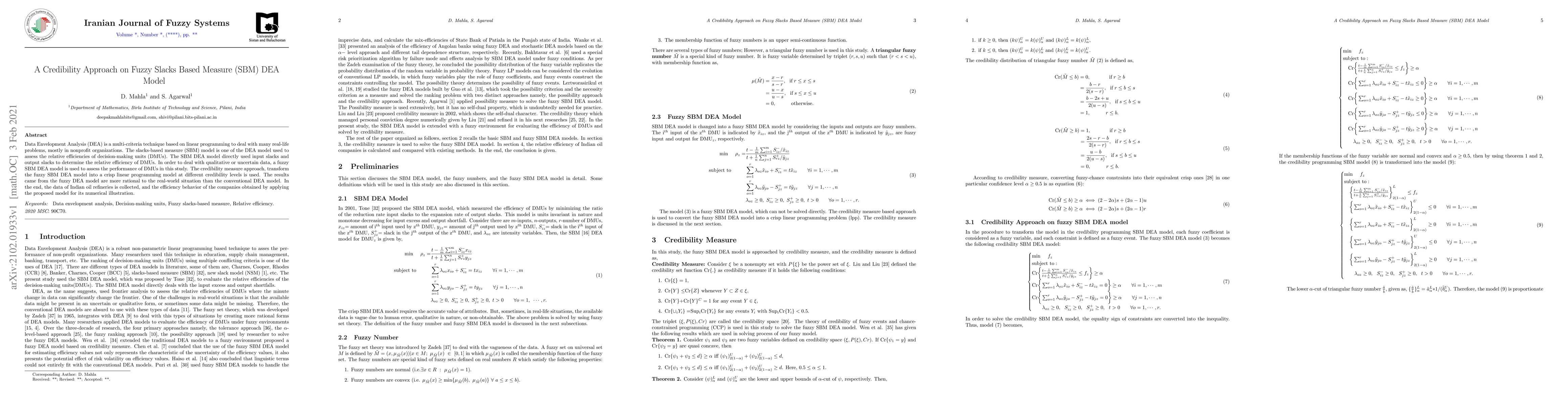 This paper proposes a credibility approach to the fuzzy slacks-based measure (SBM) DEA model for assessing the relative efficiencies of decision-making units (DMUs) under uncertain data. The results from the fuzzy DEA model are shown to be more rational than traditional DEA models, demonstrated through the efficiency analysis of Indian oil refineries.