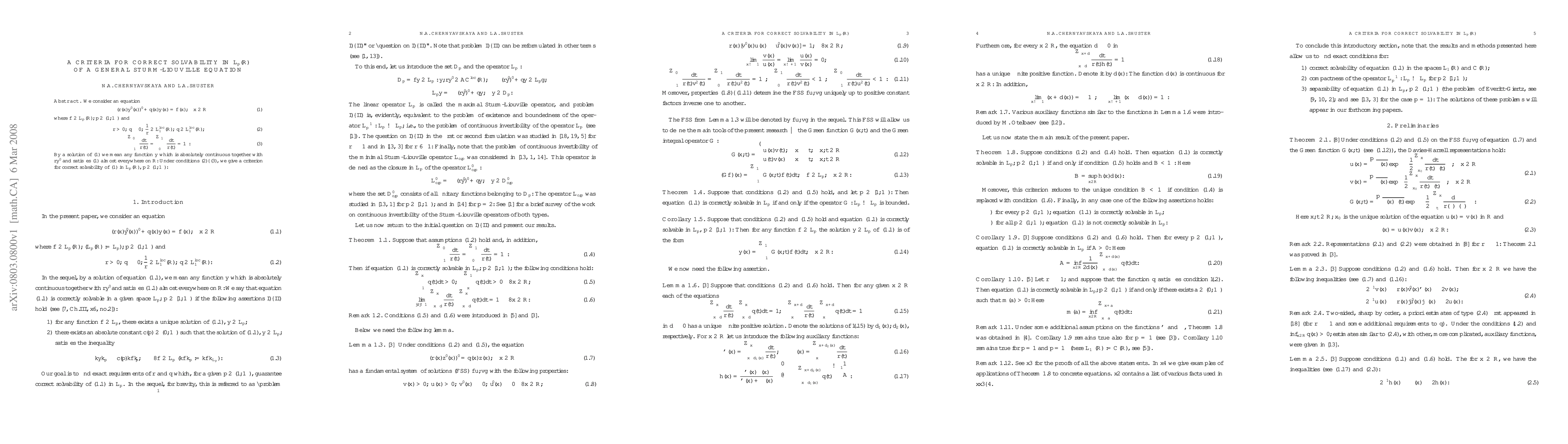 We give criteria for correct solvability in L_p(R) of a general Sturm-Liouville equation