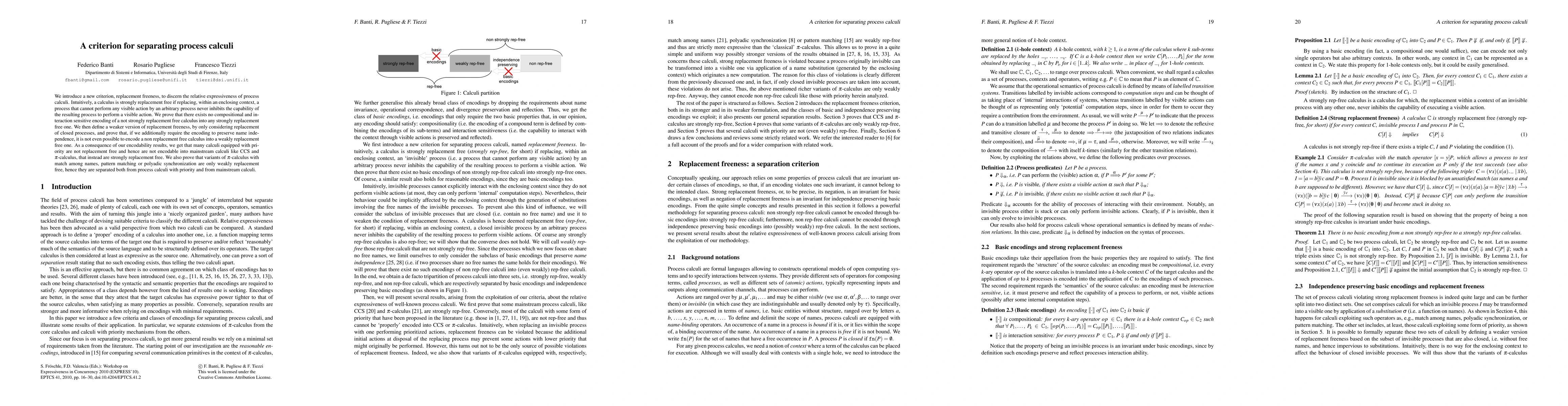 This paper introduces a new criterion called replacement freeness to evaluate the expressiveness of process calculi, proving that calculi with priority cannot be encoded into strongly replacement free calculi like CCS and pi-calculus. It also shows that variants of pi-calculus with certain features are only weakly replacement free, thus separated from both priority-based calculi and mainstream calculi.