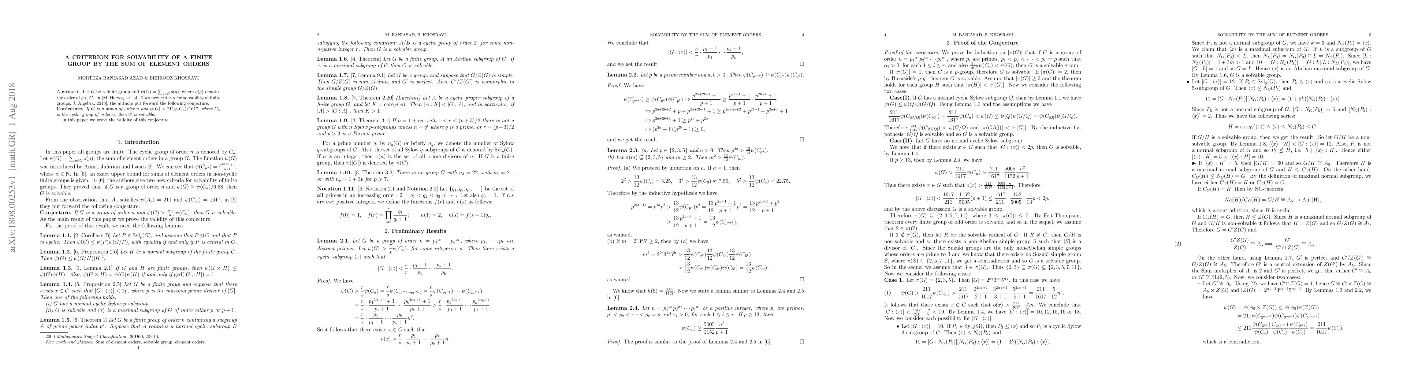 Let $G$ be a finite group and $\psi(G) = \sum_{g \in G} o(g)$, where $o(g)$ denotes the order of $g \in G$. In [M. Herzog, et. al., Two new criteria for solvability of finite groups, J. Algebra, 2018], the authors put forward the following conjecture: \textbf{Conjecture.} \textit{If $G$ is a group of order $n$ and $\psi(G)>211\psi(C_n)/1617 $, where $C_n$ is the cyclic group of order $n$, then $G$ is solvable.} In this paper we prove the validity of this conjecture.