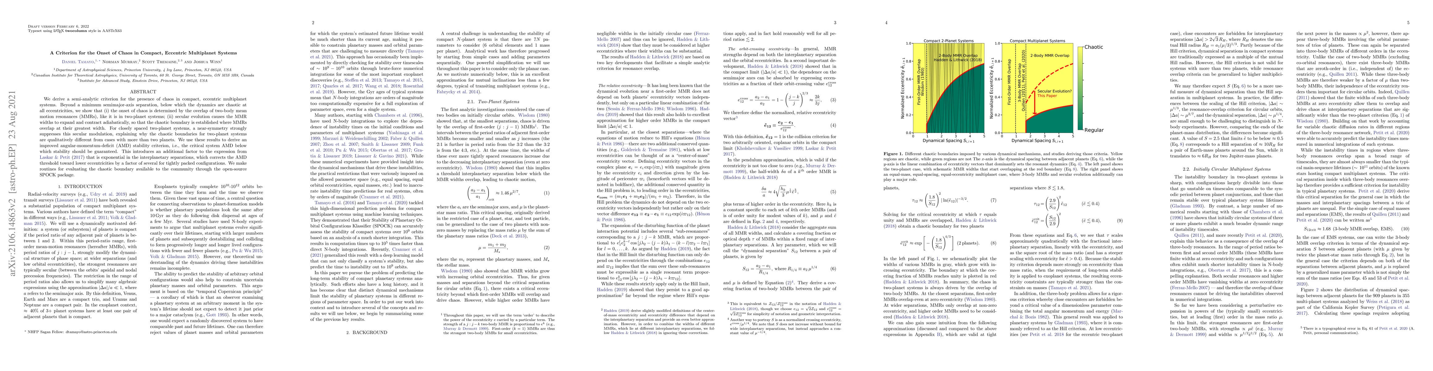 This paper derives a semi-analytic criterion for chaos in compact, eccentric multiplanet systems, showing that chaos onset is determined by the overlap of two-body mean motion resonances. It introduces an improved stability criterion based on angular-momentum-deficit, correcting previous thresholds for tightly packed planetary systems.