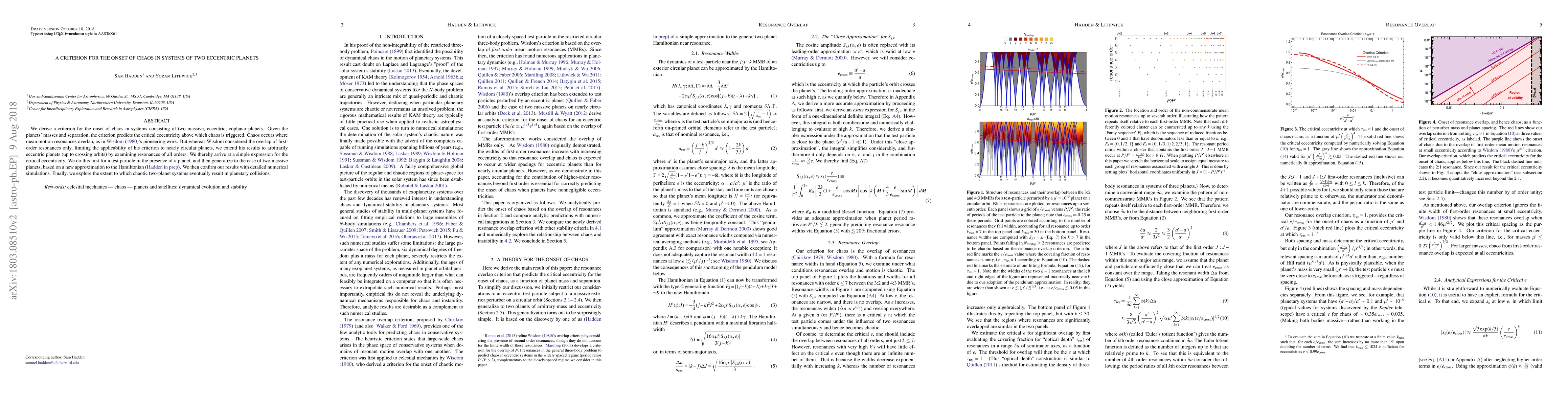 The paper presents a method to quantify resonance overlap in planetary systems, extending previous stability criteria.