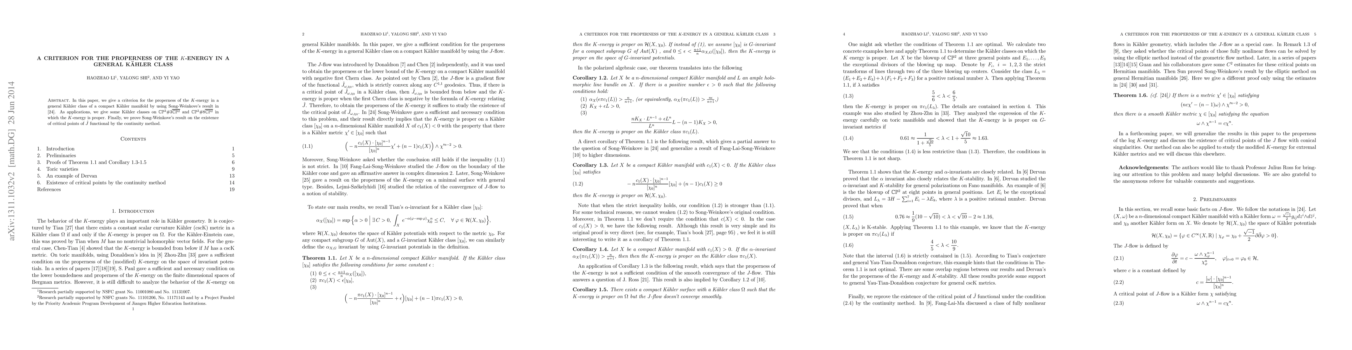 In this paper, we give a criterion for the properness of the K-energy in a general Kahler class of a compact Kahler manifold by using Song-Weinkove's result. As applications, we give some Kahler classes on $\mathbb{C}\mathbb{P}^2\#3\overline {\mathbb{C}\mathbb{P}^2}$ and $\mathbb{C}\mathbb{P}^2\#8\overline {\mathbb{C}\mathbb{P}^2}$ in which the K-energy is proper. Finally, we prove Song-Weinkove's result on the existence of critical points of $\hat J$ functional by the continuity method.