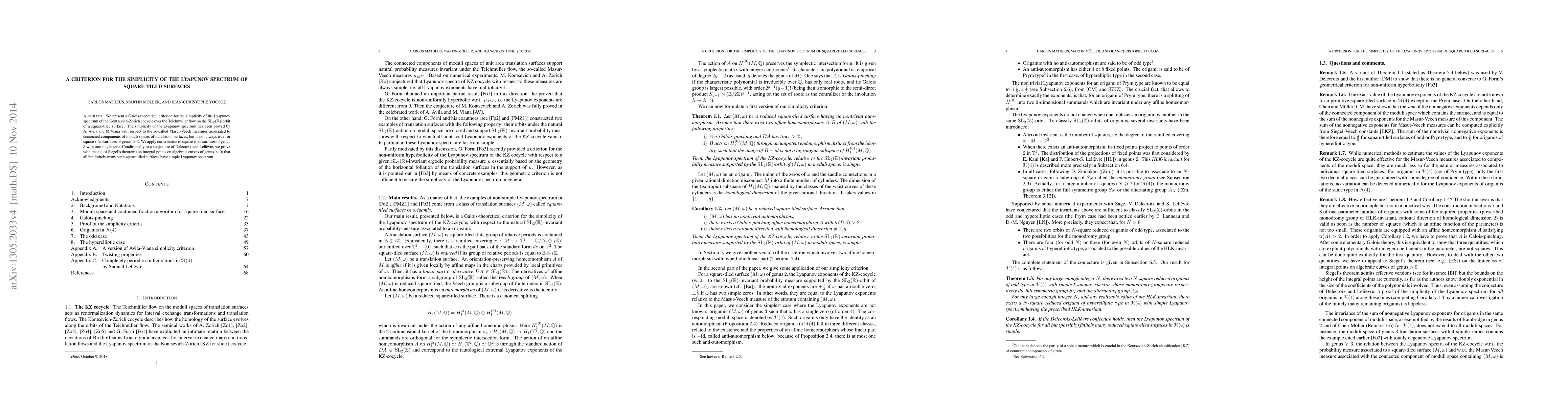 This paper introduces a Galois-theoretical criterion to determine the simplicity of the Lyapunov spectrum for square-tiled surfaces under the Kontsevich-Zorich cocycle. It conditionally proves that, based on a conjecture and Siegel's theorem, most square-tiled surfaces of genus 3 with one zero exhibit a simple Lyapunov spectrum.