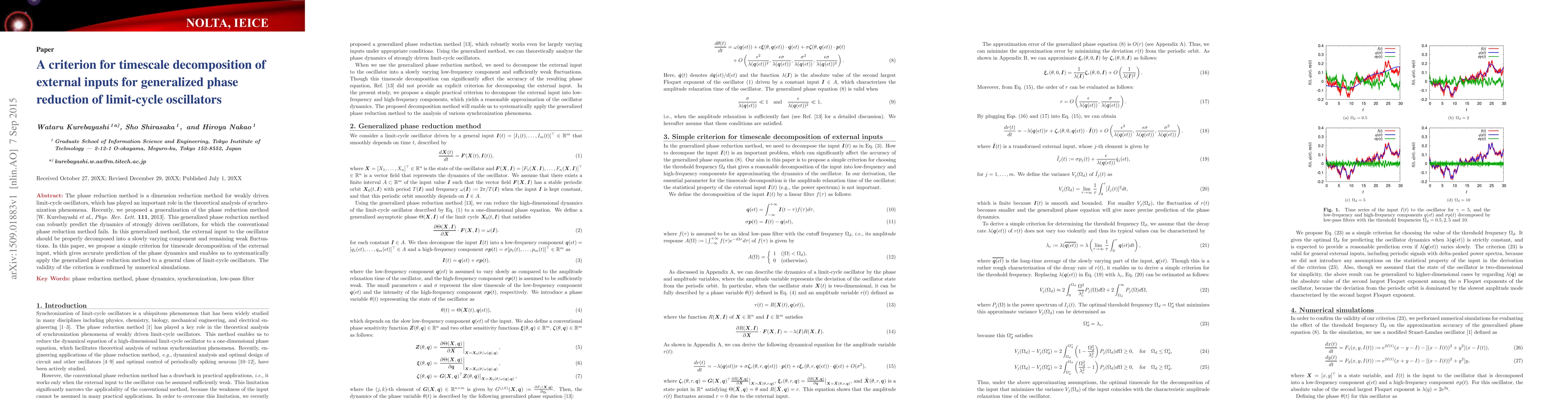 This paper proposes a criterion for decomposing external inputs into slowly varying and fluctuating components to enhance the generalized phase reduction method for limit-cycle oscillators, enabling robust predictions for strongly driven systems. The effectiveness of the criterion is validated through numerical simulations.