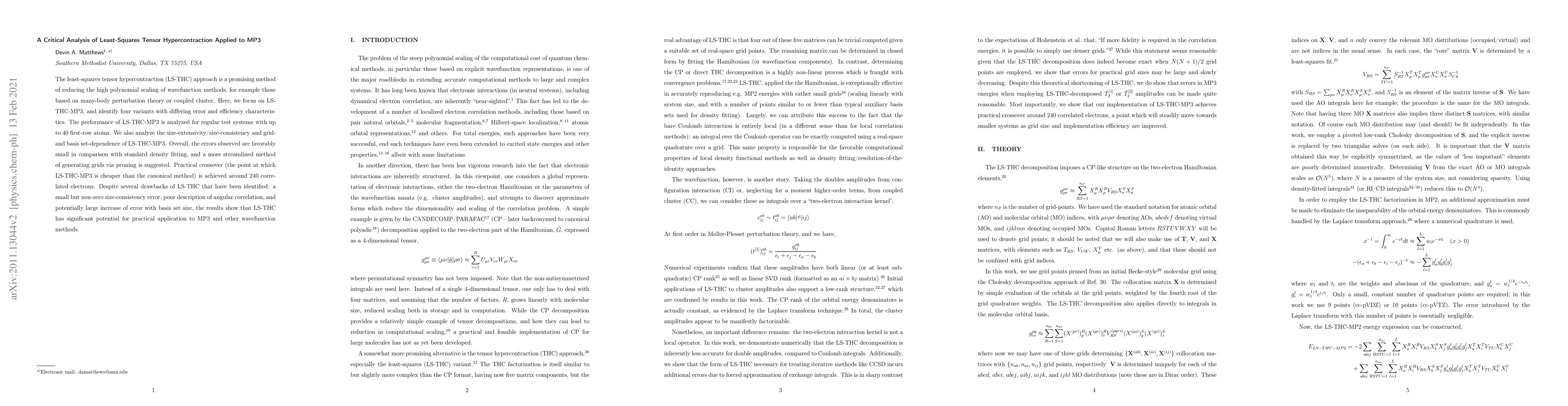 The least-squares tensor hypercontraction (LS-THC) approach is a promising method of reducing the high polynomial scaling of wavefunction methods, for example those based on many-body perturbation theory or coupled cluster. Here, we focus on LS-THC-MP3, and identify four variants with differing error and efficiency characteristics. The performance of LS-THC-MP3 is analyzed for regular test systems with up to 40 first-row atoms. We also analyze the size-extensivity/size-consistency and grid- and basis set-dependence of LS-THC-MP3. Overall, the errors observed are favorably small in comparison with standard density fitting, and a more streamlined method of generating grids via pruning is suggested. Practical crossover (the point at which LS-THC-MP3 is cheaper than the canonical method) is achieved around 240 correlated electrons. Despite several drawbacks of LS-THC that have been identified: a small but non-zero size-consistency error, poor description of angular correlation, and potentially large increase of error with basis set size, the results show that LS-THC has significant potential for practical application to MP3 and other wavefunction methods.