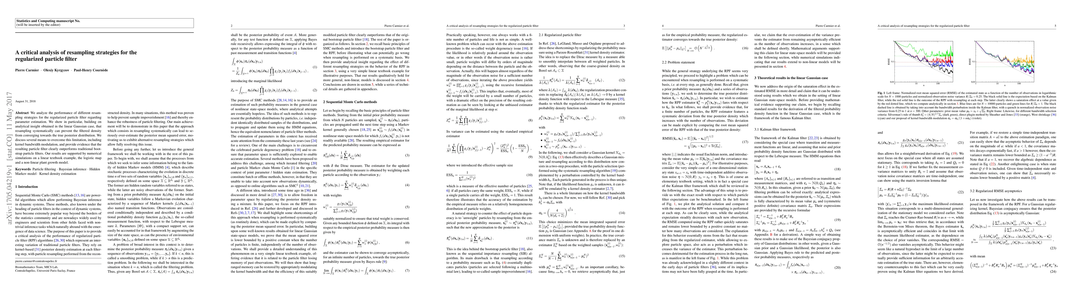 A new study analyzed resampling strategies for a type of particle filter used in parameter estimation, finding that some methods can prevent the filter from converging to the true distribution. The researchers proposed solutions and demonstrated improved performance over traditional methods.