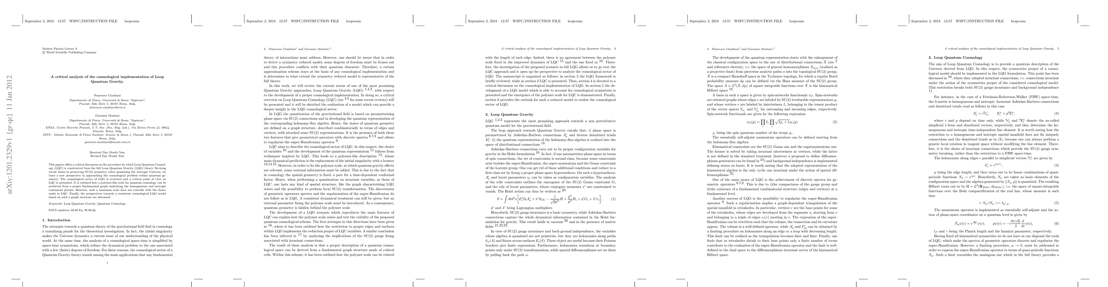 This paper critically examines the construction of Loop Quantum Cosmology (LQC) from Loop Quantum Gravity (LQG) theory, highlighting issues in maintaining SU(2) symmetry during quantization of the isotropic universe. It proposes a new approach to the cosmological problem in quantum geometry and discusses the potential for predicting a polymer-like minimum scale for quantum cosmology based on a fundamental graph structure.