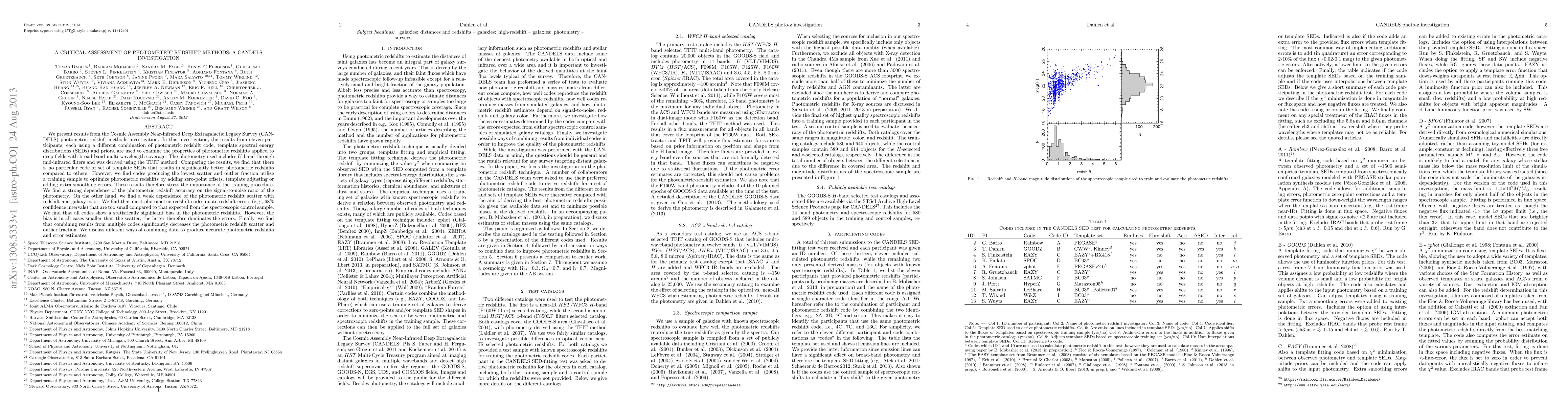 This study from CANDELS investigates various photometric redshift methods, finding no single best approach but highlighting the importance of training procedures. It concludes that combining multiple codes reduces scatter and improves accuracy, while also noting systematic biases and overestimation of error margins in individual codes.