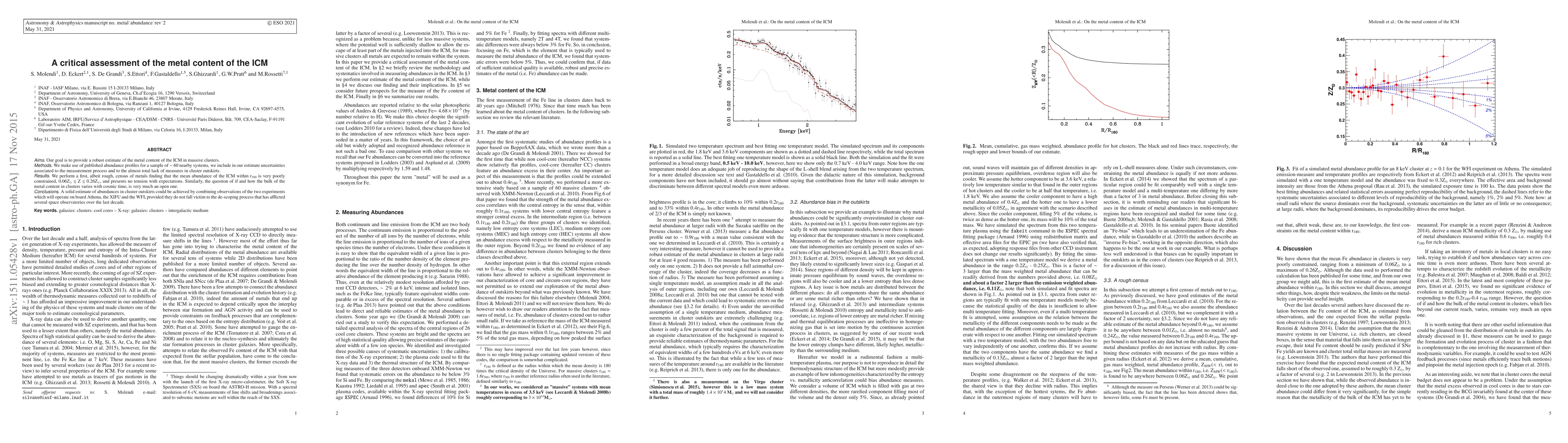 Our goal is to provide a robust estimate of the metal content of the ICM in massive clusters. We make use of published abundance profiles for a sample of ~60 nearby systems, we include in our estimate uncertainties associated to the measurement process and to the almost total lack of measures in cluster outskirts. We perform a first, albeit rough, census of metals finding that the mean abundance of the ICM within r_180 is very poorly constrained, 0.06Z_sol < Z < 0.26Z_sol, and presents no tension with expectations. Similarly, the question of if and how the bulk of the metal content in clusters varies with cosmic time, is very much an open one. A solid estimate of abundances in cluster outskirts could be achieved by combining observations of the two experiments which will operate on board Athena, the XIFU and the WFI, provided they do not fall victim to the de-scoping process that has afflicted several space observatories over the last decade.