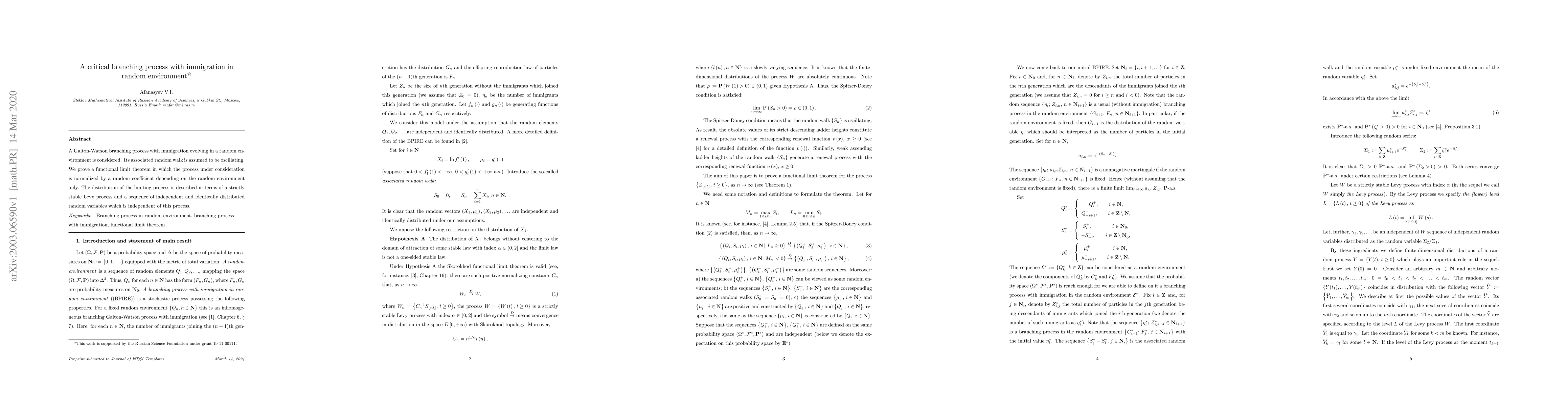 This paper studies a branching process with immigration in a random environment, proving a functional limit theorem where the process is normalized by a random coefficient. The limiting behavior is characterized by a strictly stable Lévy process and an independent identically distributed random variable sequence.