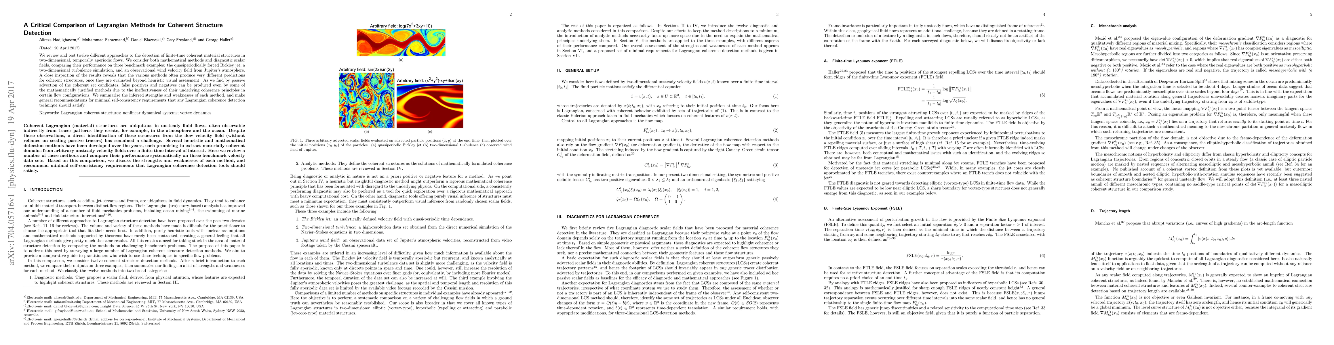 We review and test twelve different approaches to the detection of finite-time coherent material structures in two-dimensional, temporally aperiodic flows. We consider both mathematical methods and diagnostic scalar fields, comparing their performance on three benchmark examples: the quasiperiodically forced Bickley jet, a two-dimensional turbulence simulation, and an observational wind velocity field from Jupiter's atmosphere. A close inspection of the results reveals that the various methods often produce very different predictions for coherent structures, once they are evaluated beyond heuristic visual assessment. As we find by passive advection of the coherent set candidates, false positives and negatives can be produced even by some of the mathematically justified methods due to the ineffectiveness of their underlying coherence principles in certain flow configurations. We summarize the inferred strengths and weaknesses of each method, and make general recommendations for minimal self-consistency requirements that any Lagrangian coherence detection technique should satisfy.
