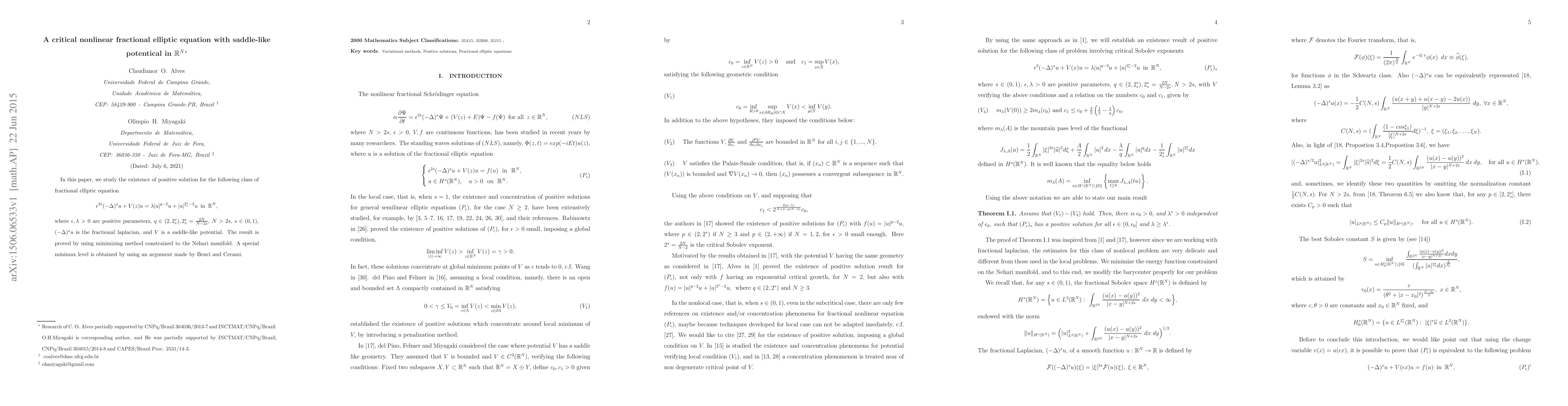 In this paper, we study the existence of positive solution for the following class of fractional elliptic equation $$ \epsilon^{2s} (-\Delta)^{s}{u}+V(z)u=\lambda |u|^{q-2}u+|u|^{2^{*}_{s}-2}u\,\,\, \mbox{in} \,\,\, \mathbb{R}^{N}, $$ where $\epsilon, \lambda >0$ are positive parameters, $q \in (2,2^{*}_{s}), 2^{*}_{s}=\frac{2N}{N-2s}, $ $N > 2s,$ $s \in (0,1),$ $ (-\Delta)^{s}u$ is the fractional laplacian, and $V$ is a saddle-like potential. The result is proved by using minimizing method constrained to the Nehari manifold. A special minimax level is obtained by using an argument made by Benci and Cerami.