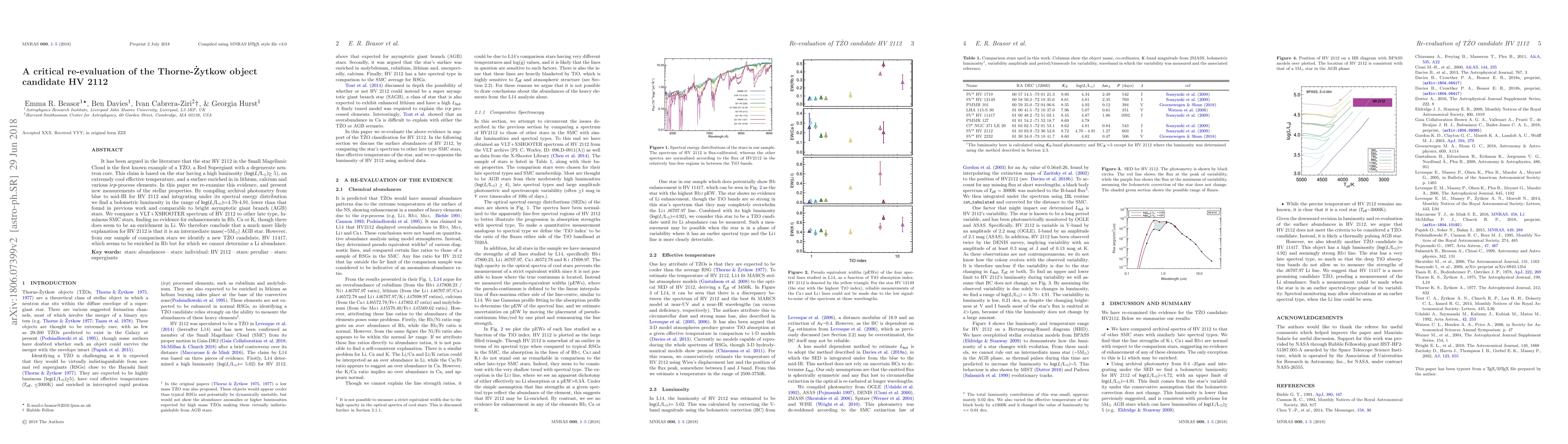 It has been argued in the literature that the star HV~2112 in the Small Magellanic Cloud is the first known example of a T\.ZO, a Red Supergiant with a degenerate neutron core. This claim is based on the star having a high luminosity ($\log (L/L_\odot)$~> 5), an extremely cool effective temperature, and a surface enriched in in lithium, calcium and various $irp$-process elements. In this paper we re-examine this evidence, and present new measurements of the stellar properties. By compiling archival photometry from blue to mid-IR for HV~2112 and integrating under it's spectral energy distribution we find a bolometric luminosity in the range of $\log (L/L_\odot)$=4.70-4.91, lower than that found in previous work and comparable to bright asymptotic giant branch (AGB) stars. We compare a VLT+XSHOOTER spectrum of HV~2112 to other late type, luminous SMC stars, finding no evidence for enhancements in Rb, Ca or K, though there does seem to be an enrichment in Li. We therefore conclude that a much more likely explanation for HV~2112 is that it is an intermediate mass($\sim$5M$_\odot$) AGB star. However, from our sample of comparison stars we identify a new T\.ZO candidate, HV~11417, which seems to be enriched in Rb but for which we cannot determine a Li abundance.