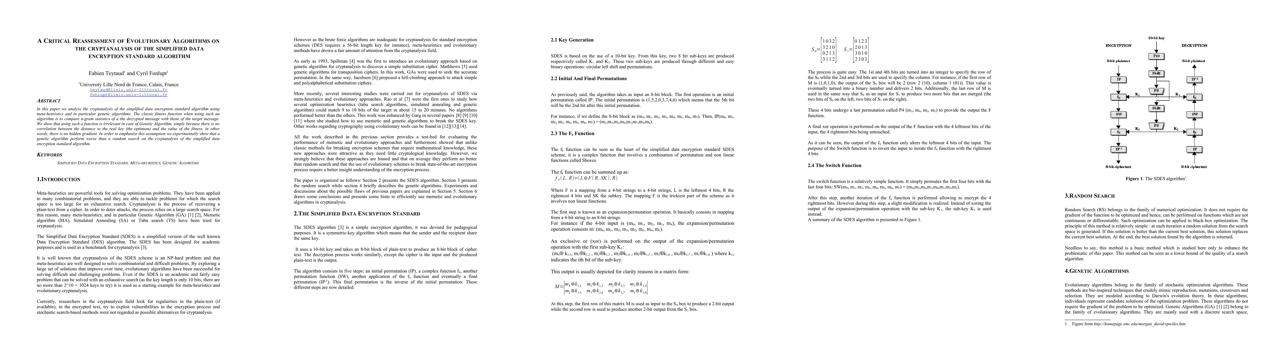 In this paper we analyze the cryptanalysis of the simplified data encryption standard algorithm using meta-heuristics and in particular genetic algorithms. The classic fitness function when using such an algorithm is to compare n-gram statistics of a the decrypted message with those of the target message. We show that using such a function is irrelevant in case of Genetic Algorithm, simply because there is no correlation between the distance to the real key (the optimum) and the value of the fitness, in other words, there is no hidden gradient. In order to emphasize this assumption we experimentally show that a genetic algorithm perform worse than a random search on the cryptanalysis of the simplified data encryption standard algorithm.