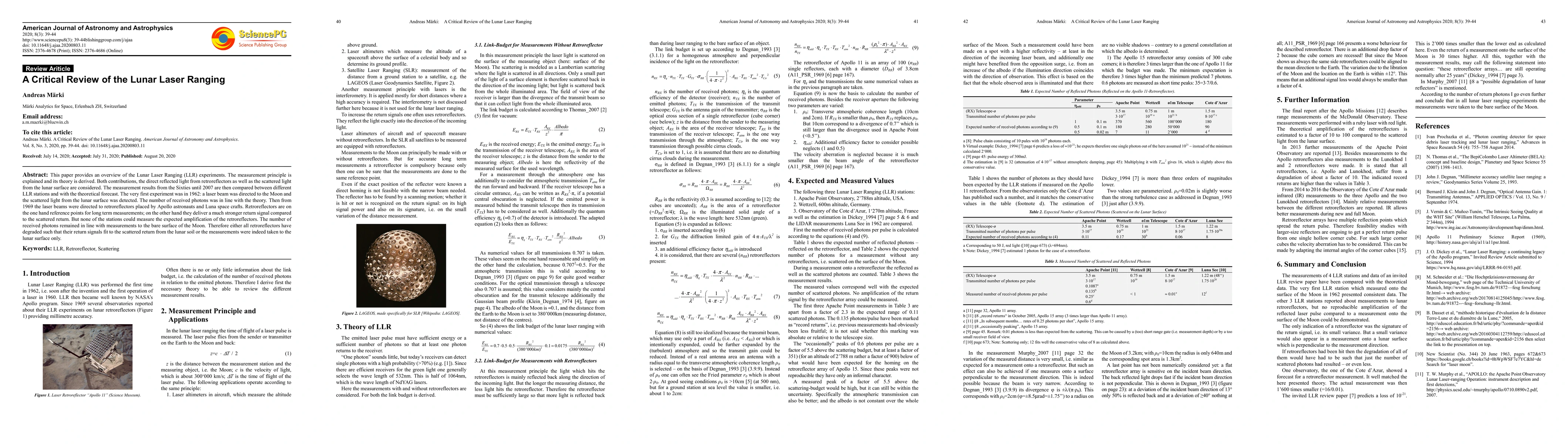 A critical review of Lunar Laser Ranging experiments reveals a discrepancy between expected amplification from retroreflectors and actual measurements, suggesting either degradation of reflectors or lunar surface measurements only.