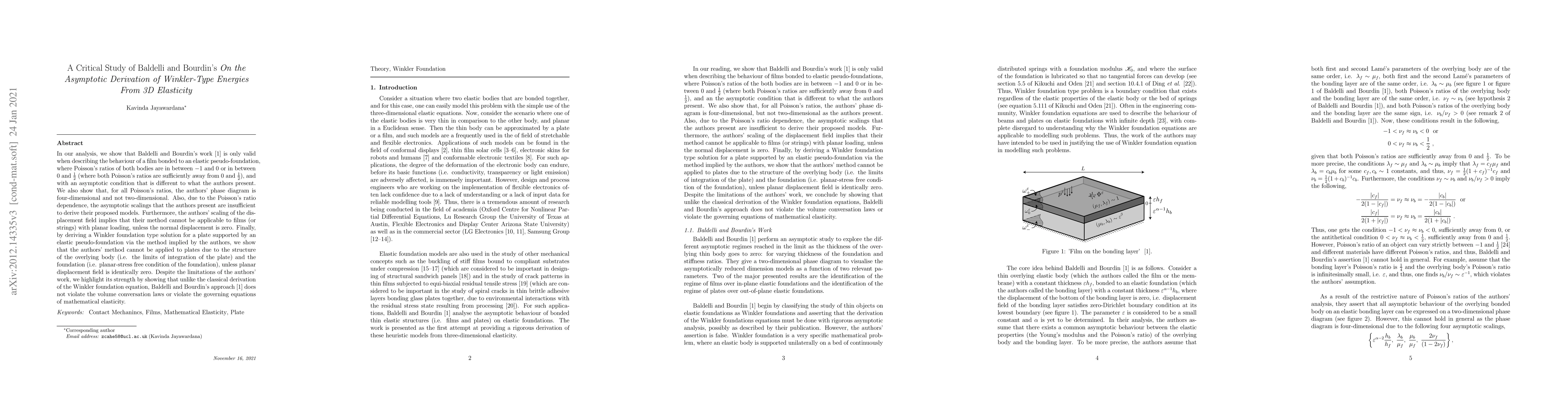 Researchers found Baldelli and Bourdin's method for deriving Winkler-type energies has limitations, including only being valid for certain Poisson ratios and not applicable to plates or films with non-zero planar displacement fields.
