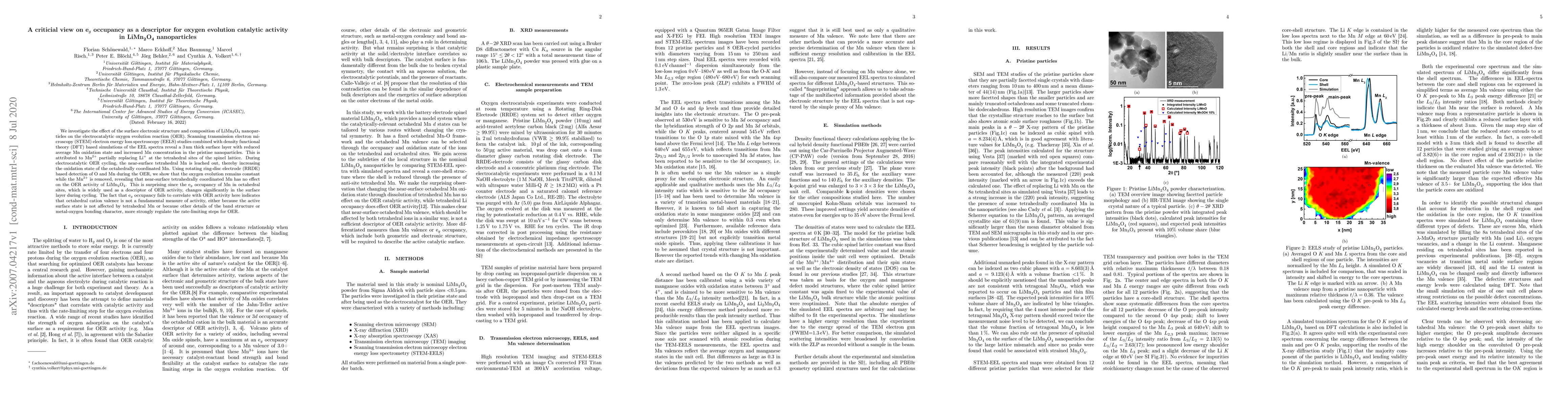 We investigate the effect of the surface electronic structure and composition of LiMn$_2$O$_4$ nanoparticles on the electrocatalytic oxygen evolution reaction (OER). Scanning transmission electron microscopy (STEM) electron energy loss spectroscopy (EELS) studies combined with density functional theory (DFT) based simulations of the EEL spectra reveal in pristine nanoparticles a 4 nm thick surface layer with reduced average Mn oxidation state and increased Mn concentration. This is attributed to Mn$^{2+}$ partially replacing Li$^+$ at the tetrahedral sites of the spinel lattice accompanied by Mn 3d-state filling of octahedrally coordinated Mn. During electrocatalytic OER cycling, this near-surface tetrahedral Mn is leached out, thereby increasing the oxidation state of octahedrally coordinated Mn. Using rotating ring-disc electrode (RRDE) based detection of O and Mn during the OER, we show that the oxygen evolution remains constant while the Mn$^{2+}$ is removed, revealing that near-surface tetrahedrally coordinated Mn has no effect on the OER activity of LiMn$_2$O$_4$. This is surprising since the e$_g$ occupancy of Mn in octahedral sites, which is widely used as a descriptor of OER activity, changes significantly in the surface layer during cycling. The fact that e$_g$ emptying fails to correlate with OER activity here indicates that octahedral cation valence is not a fundamental measure of activity, either because the active surface state is not affected by tetrahedral Mn or because other details of the band structure or metal-oxygen bonding character, more strongly regulate the rate-limiting steps for OER.