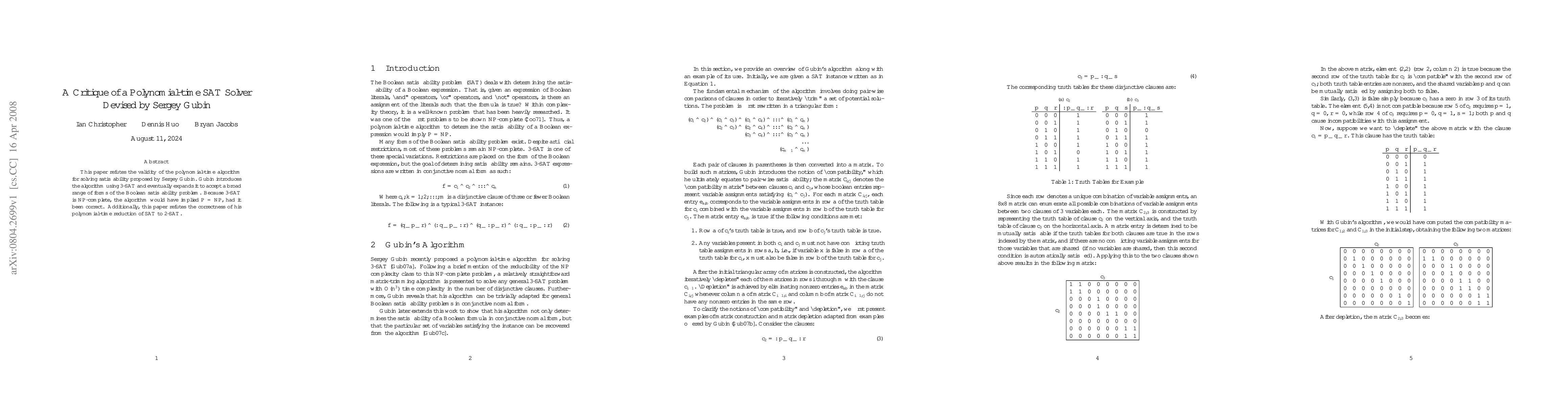 This paper critiques Sergey Gubin's polynomial-time SAT solver, arguing against its validity and showing that it incorrectly implies P = NP. It also refutes Gubin's polynomial-time reduction of SAT to 2-SAT.