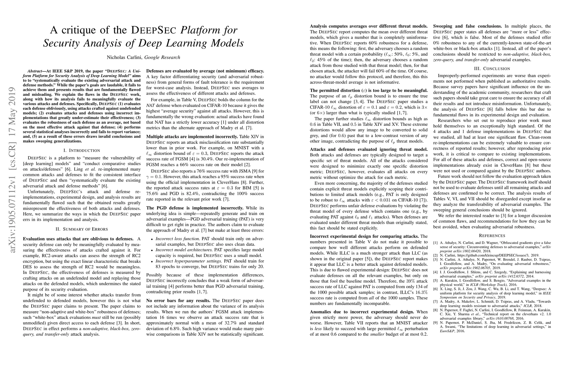 A research paper critiques the DeepSec Platform for Security Analysis of Deep Learning Models, finding it to be fundamentally flawed and misleading due to errors in methodology and statistical analysis, which lead to invalid conclusions about attack and defense effectiveness.