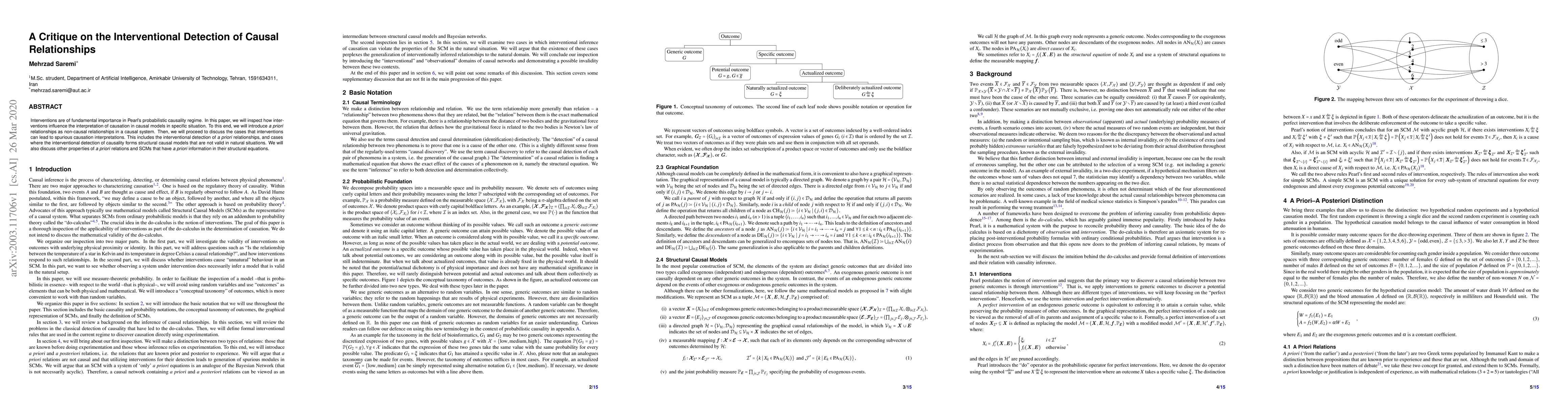 Interventions are of fundamental importance in Pearl's probabilistic causality regime. In this paper, we will inspect how interventions influence the interpretation of causation in causal models in specific situation. To this end, we will introduce a priori relationships as non-causal relationships in a causal system. Then, we will proceed to discuss the cases that interventions can lead to spurious causation interpretations. This includes the interventional detection of a priori relationships, and cases where the interventional detection of causality forms structural causal models that are not valid in natural situations. We will also discuss other properties of a priori relations and SCMs that have a priori information in their structural equations.