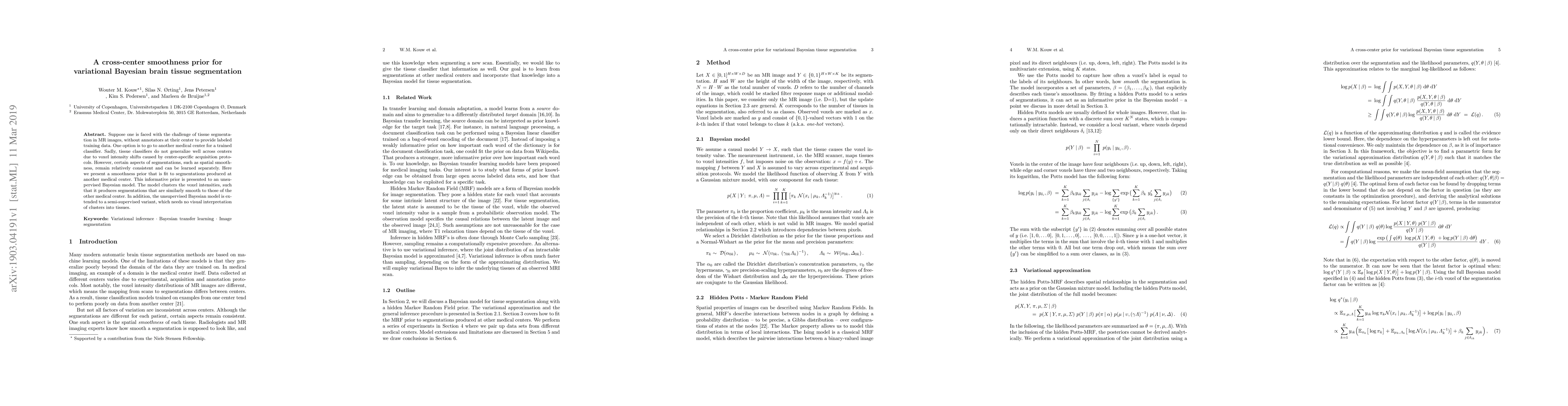 This paper proposes a smoothness prior to improve unsupervised Bayesian brain tissue segmentation in MRI images across different medical centers. The prior is fitted to segmentations from another center to account for voxel intensity differences, enabling the model to produce smooth tissue segmentations without requiring labeled training data.
