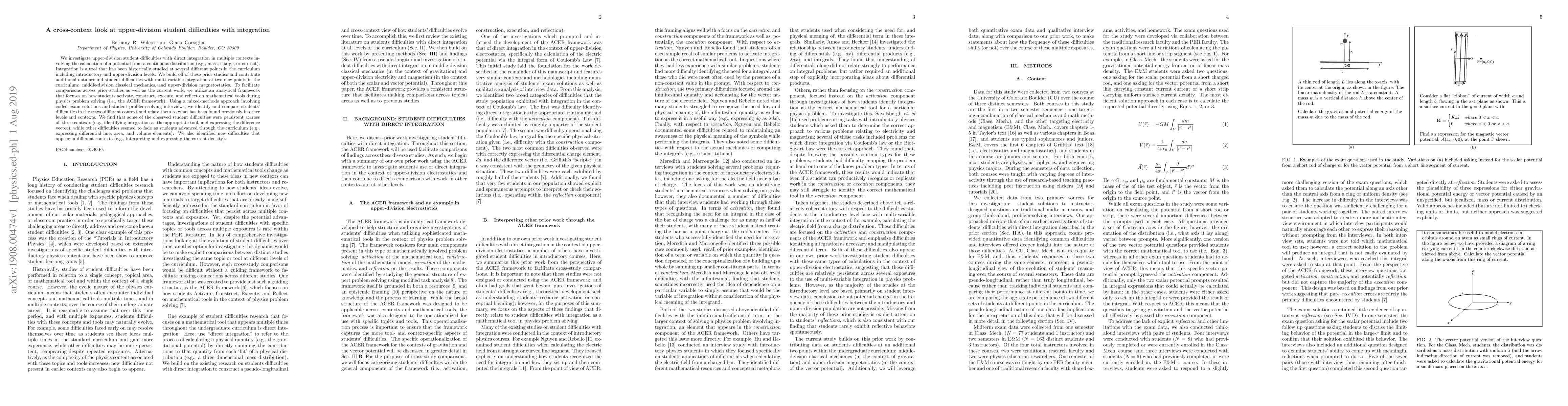 This study explores upper-division students' difficulties with direct integration in physics, comparing challenges across middle-division classical mechanics and upper-division magnetostatics using the ACER framework. Persistent issues include identifying integration and expressing difference vectors, while new challenges like interpreting current density emerge in different contexts.