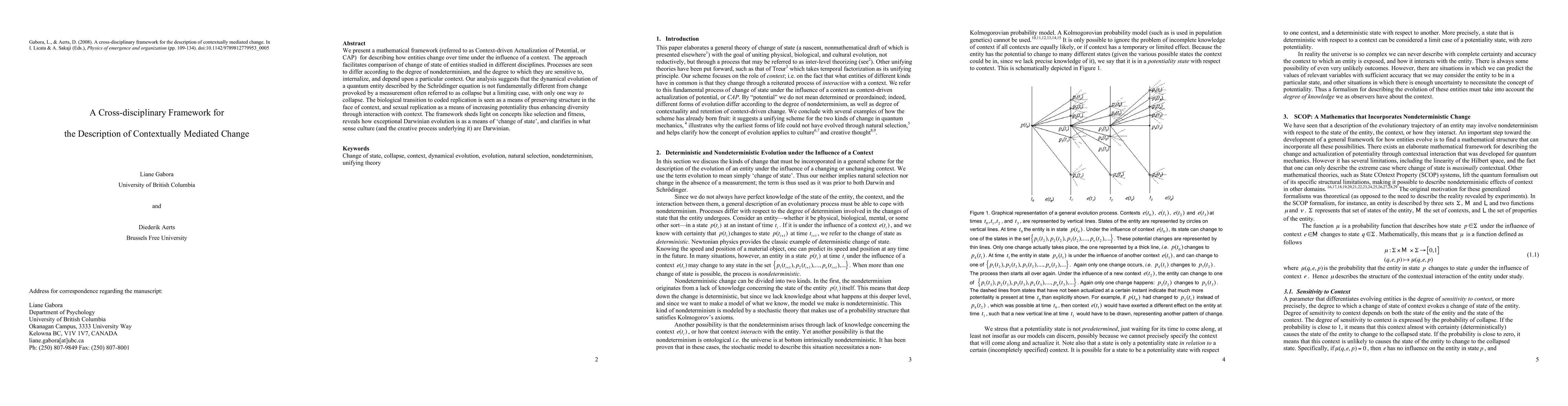 We present a mathematical framework (referred to as Context-driven Actualization of Potential, or CAP) for describing how entities change over time under the influence of a context. The approach facilitates comparison of change of state of entities studied in different disciplines. Processes are seen to differ according to the degree of nondeterminism, and the degree to which they are sensitive to, internalize, and depend upon a particular context. Our analysis suggests that the dynamical evolution of a quantum entity described by the Schrodinger equation is not fundamentally different from change provoked by a measurement often referred to as collapse, but a limiting case, with only one way to collapse. The biological transition to coded replication is seen as a means of preserving structure in the fact of context-driven change, and sextual replication as a means of increasing potentiality thus enhancing diversity through interaction with context. The framework sheds light on concepts like selection and fitness, reveals how exceptional Darwinian evolution is as a means of 'change of state', and clarifies in what sense culture, and the creative process underlying it, are Darwinian.