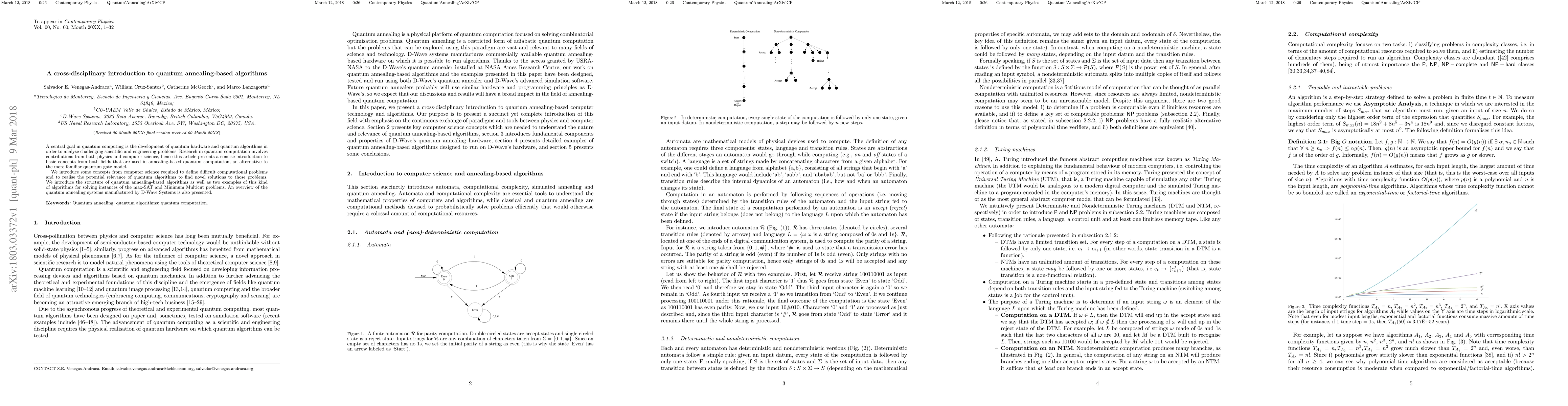 The paper provides a cross-disciplinary introduction to quantum annealing-based algorithms, integrating concepts from both physics and computer science. It details the structure of quantum annealing-based algorithms and presents examples for solving max-SAT and Minimum Multicut problems.