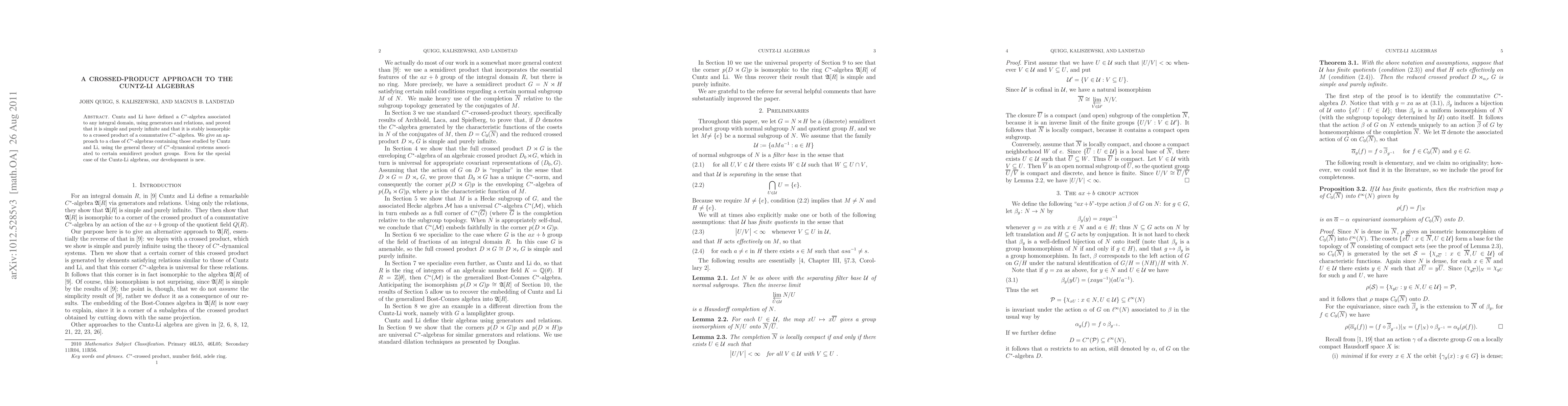 Cuntz and Li have defined a C*-algebra associated to any integral domain, using generators and relations, and proved that it is simple and purely infinite and that it is stably isomorphic to a crossed product of a commutative C*-algebra. We give an approach to a class of C*-algebras containing those studied by Cuntz and Li, using the general theory of C*-dynamical systems associated to certain semidirect product groups. Even for the special case of the Cuntz-Li algebras, our development is new.