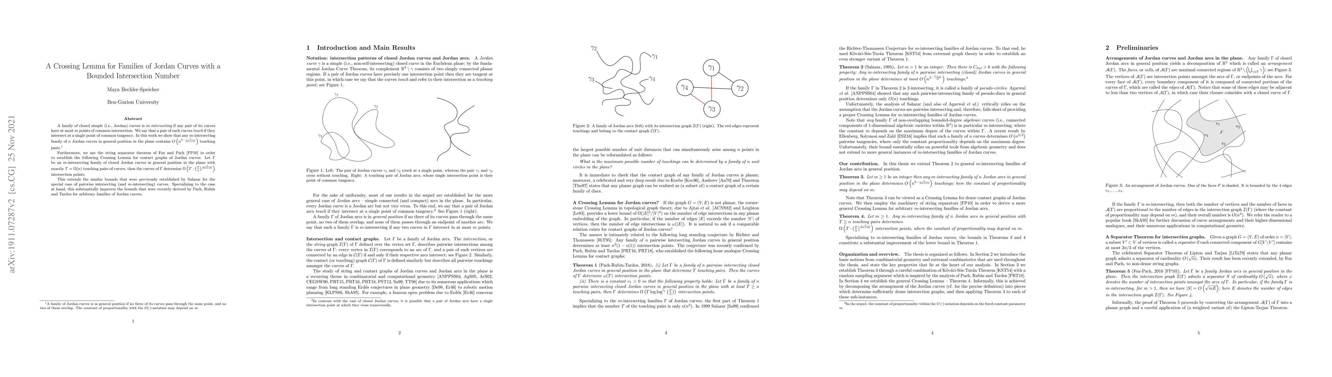 A family of closed simple (i.e., Jordan) curves is $m$-intersecting if any pair of its curves have at most $m$ points of common intersection. We say that a pair of such curves touch if they intersect at a single point of common tangency. In this work we show that any $m$-intersecting family of $n$ Jordan curves in general position in the plane contains $O\left(n^{2-\frac{1}{3m+15}}\right)$ touching pairs Furthermore, we use the string separator theorem of Fox and Pach in order to establish the following Crossing Lemma for contact graphs of Jordan curves: Let $\Gamma$ be an $m$-intersecting family of closed Jordan curves in general position in the plane with exactly $T=\Omega(n)$ touching pairs of curves, then the curves of $\Gamma$ determine $\Omega\left(T\cdot\left(\frac{T}{n}\right)^{\frac{1}{9m+45}}\right)$ intersection points. This extends the similar bounds that were previously established by Salazar for the special case of pairwise intersecting (and $m$-intersecting) curves. Specializing to the case at hand, this substantially improves the bounds that were recently derived by Pach, Rubin and Tardos for arbitrary families of Jordan curves.