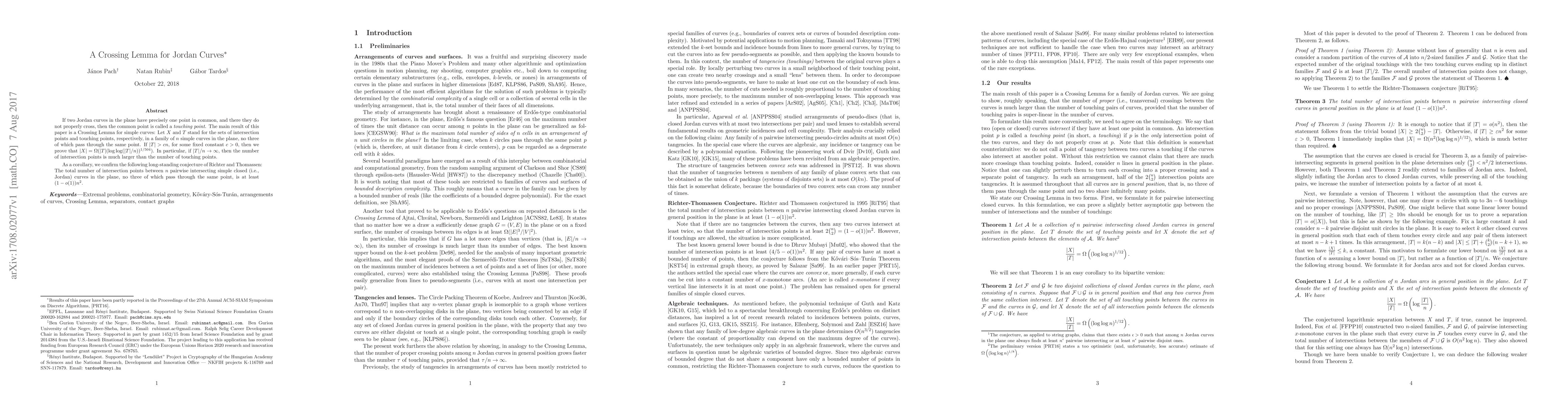 If two Jordan curves in the plane have precisely one point in common, and there they do not properly cross, then the common point is called a {\em touching point}. The main result of this paper is a Crossing Lemma for simple curves: Let $X$ and $T$ stand for the sets of intersection points and touching points, respectively, in a family of $n$ simple curves in the plane, no three of which pass through the same point. If $|T|>cn$, for some fixed constant $c>0$, then we prove that $|X|=\Omega(|T|(\log\log(|T|/n))^{1/504})$. In particular, if $|T|/n\rightarrow\infty$, then the number of intersection points is much larger than the number of touching points. As a corollary, we confirm the following long-standing conjecture of Richter and Thomassen: The total number of intersection points between $n$ pairwise intersecting simple closed (i.e., Jordan) curves in the plane, no three of which pass through the same point, is at least $(1-o(1))n^2$.