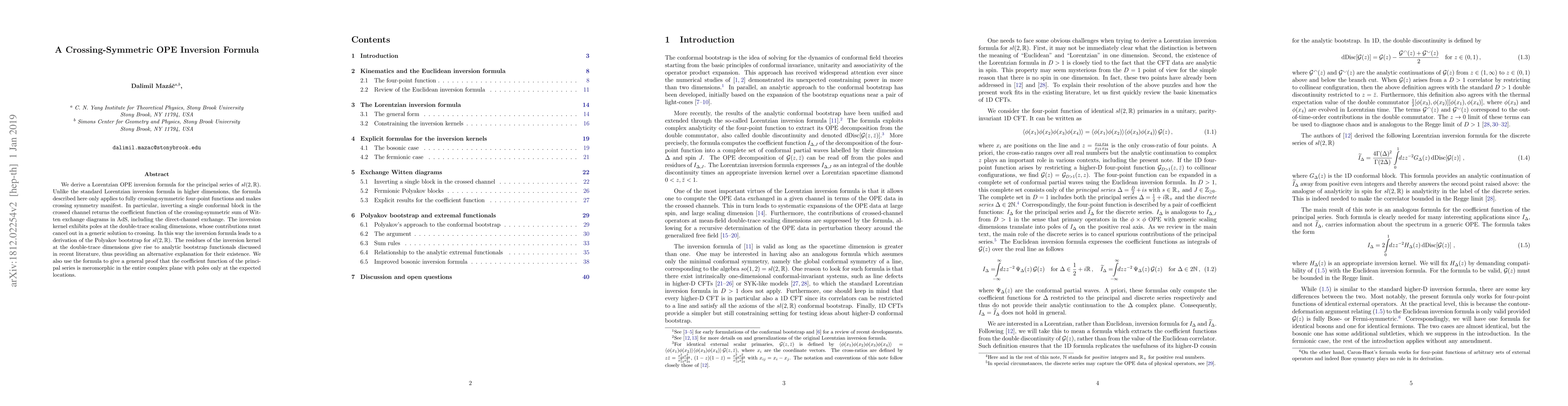 This paper derives a Lorentzian OPE inversion formula for the principal series of $sl(2,\mathbb{R})$, specifically for fully crossing-symmetric four-point functions, and connects it to the Polyakov bootstrap and the analytic bootstrap functionals. The formula also proves the meromorphicity of the coefficient function in the complex plane.