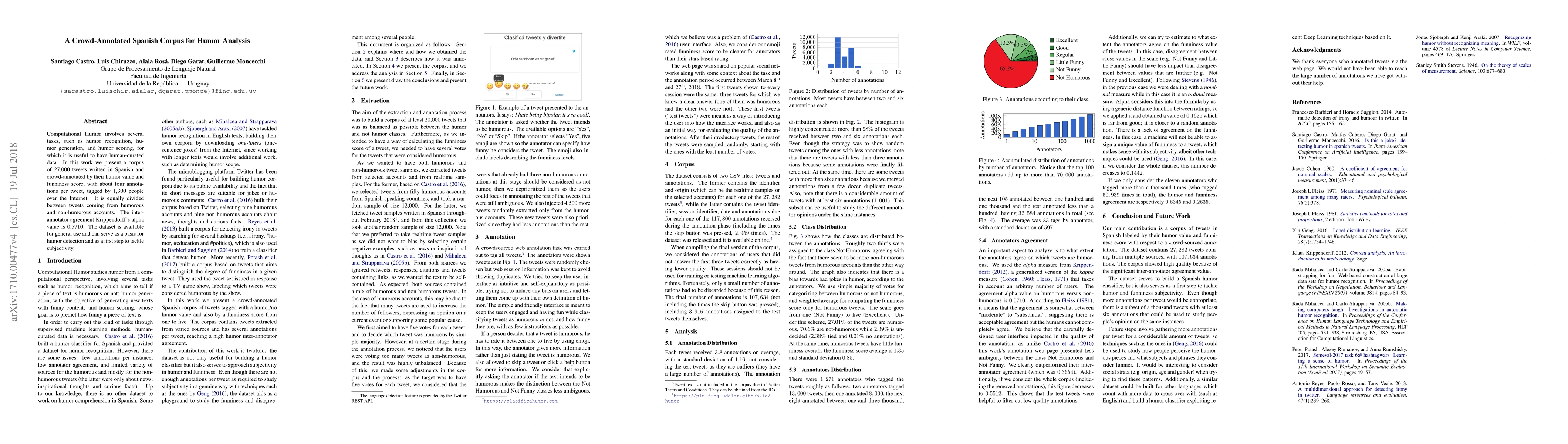 A crowd-annotated Spanish corpus of 27,000 tweets is presented for humor analysis, with annotations from 1,300 people, providing a basis for humor detection and subjectivity research.