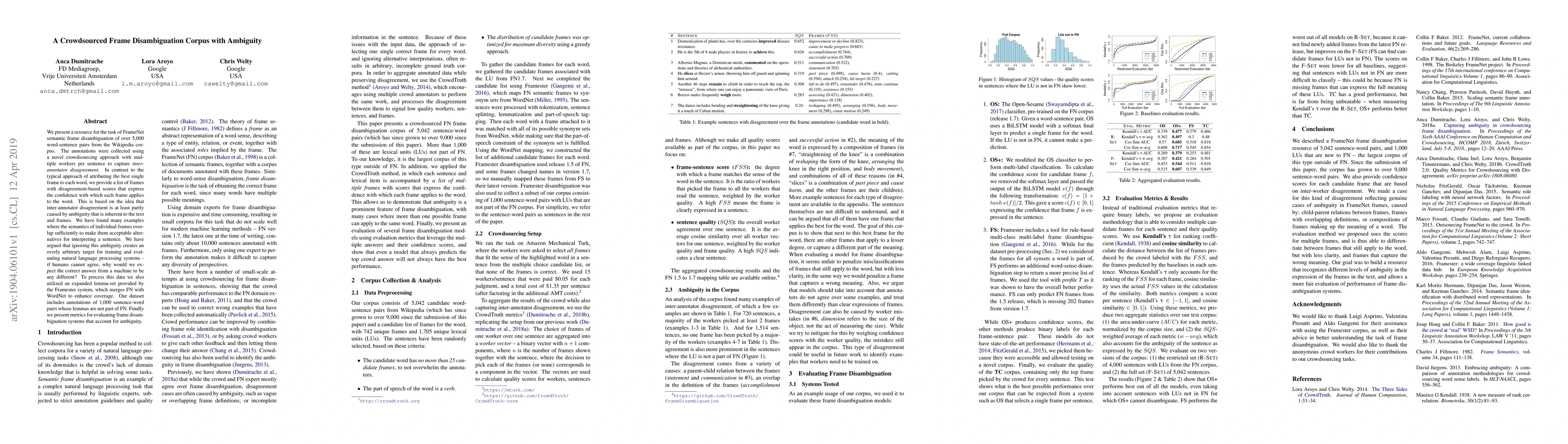 Researchers created a crowdsourced corpus of 5,000 word-sentence pairs to study FrameNet semantic frame disambiguation, highlighting the importance of considering ambiguity in natural language processing systems.