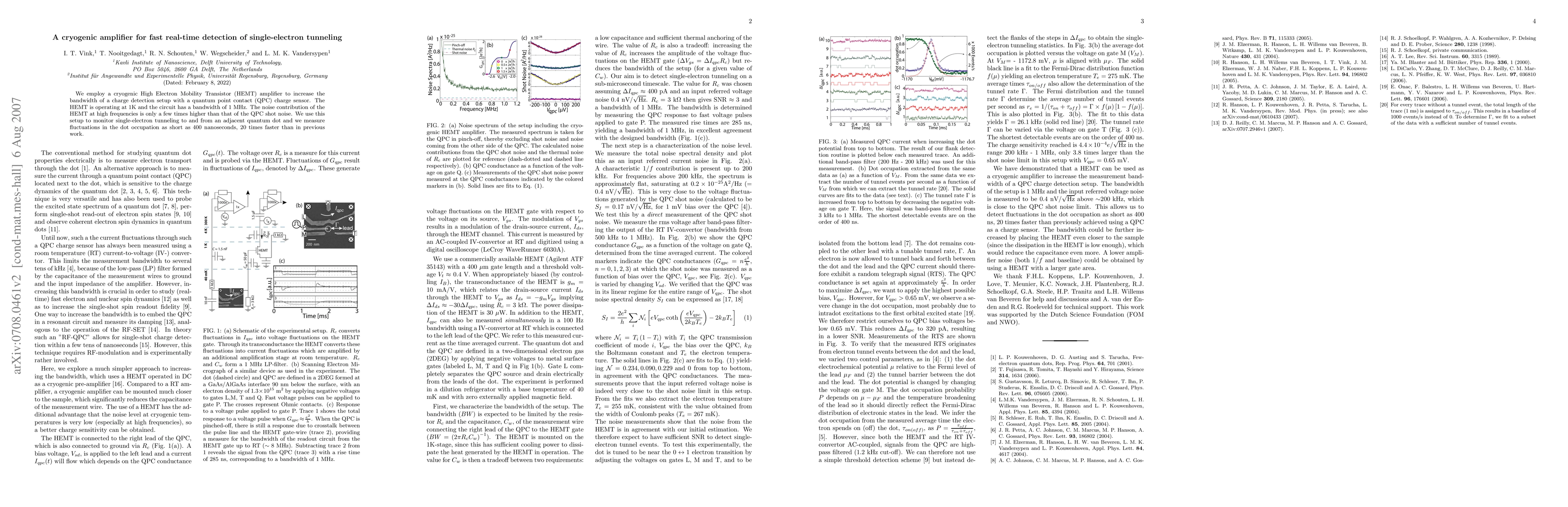 We employ a cryogenic High Electron Mobility Transistor (HEMT) amplifier to increase the bandwidth of a charge detection setup with a quantum point contact (QPC) charge sensor. The HEMT is operating at 1K and the circuit has a bandwidth of 1 MHz. The noise contribution of the HEMT at high frequencies is only a few times higher than that of the QPC shot noise. We use this setup to monitor single-electron tunneling to and from an adjacent quantum dot and we measure fluctuations in the dot occupation as short as 400 nanoseconds, 20 times faster than in previous work.